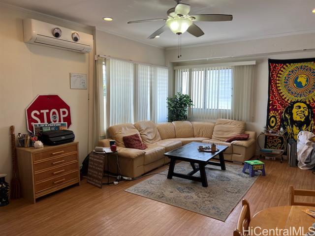 Attractive one-bedroom, one-bath unit on second (top) floor of four-unit apartment building with one assigned, uncovered parking stall. Good cross ventilation. Refrigerator, gas stove, microwave. Easy to clean vinyl plank flooring. Extra storage on first floor. Convenient location. Close to Safeway (one block up, one over) and other stores on Kapahulu Avenue, one block from bus stops. Close to freeway access in both directions. Coin-operated washer and dryer, clothes lines, community outdoor patio furniture. One or two fixed, indoor cats OK, subject to approval and additional pet deposit. No dogs. One year lease, security deposit required. Tenant pays gas. Electricity, water, and sewer included. No smoking in the unit or on the property. Agent is son of owner. Showings by appointment.
