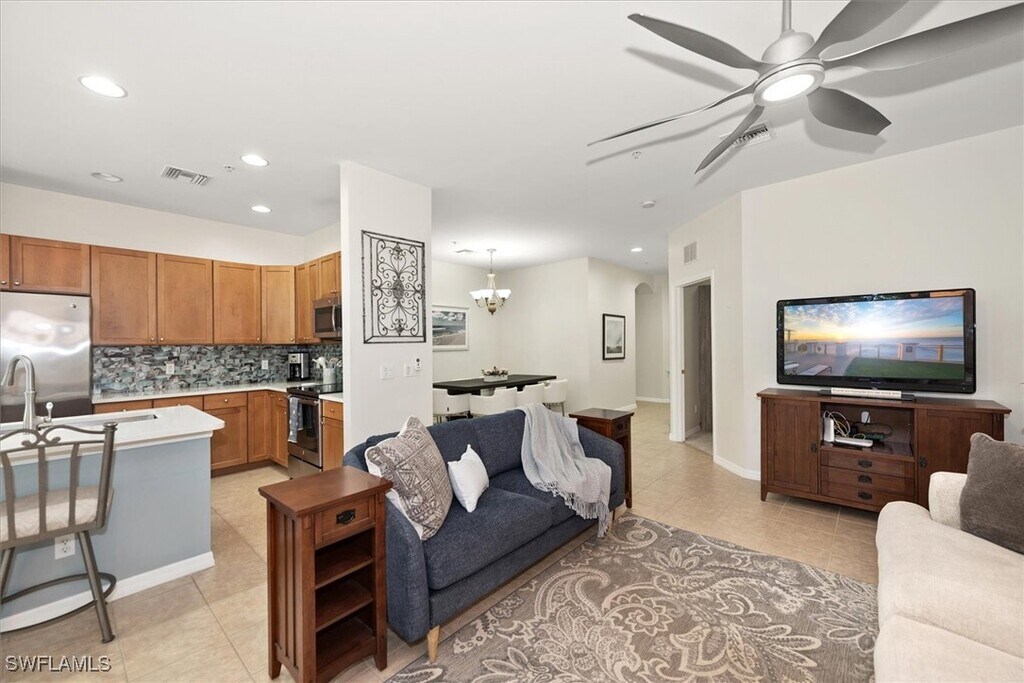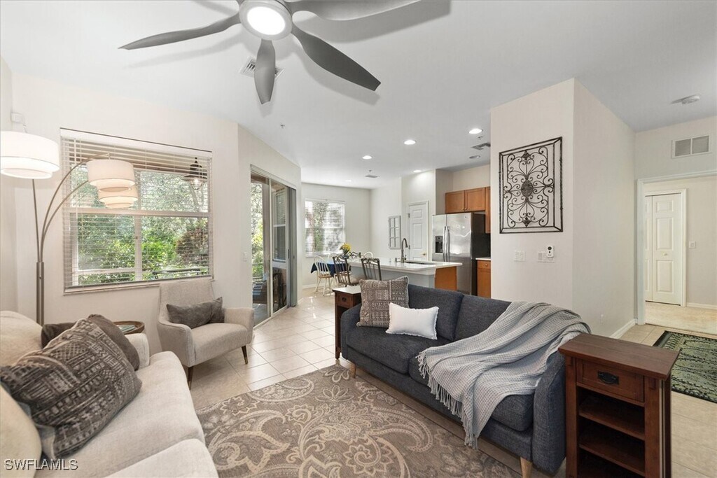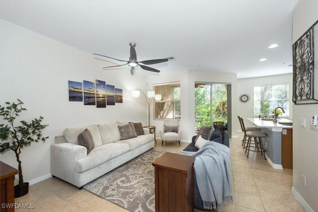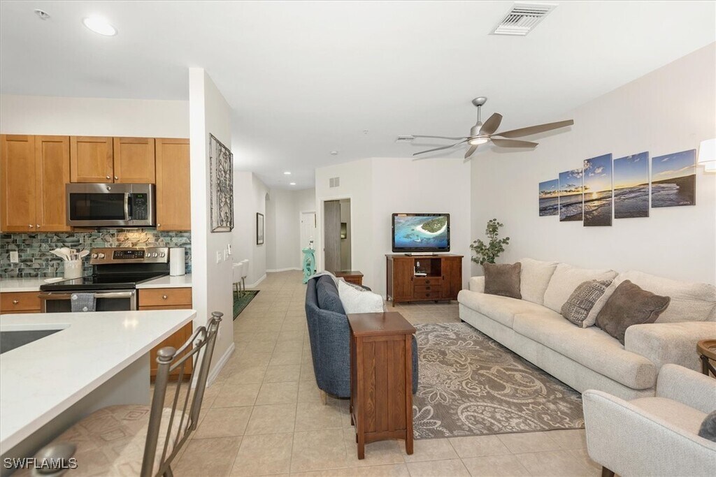 Turnkey Furnished in Exclusive Spanish Wells Gated Golf Community!!! Great opportunity to enjoy your slice of paradise located in Spanish Wells golf Community,Bonita Springs. This desirable,turnkey furnished,first floor unit is move-in ready with 3 bedroom/2 bath open floor plan and attached garage. Recent updates include quartz countertops,an extended/oversized island,stainless steel appliances and a beautiful glass backsplash. The eat-in kitchen plus formal dining provides ample room for entertaining friends and family. The lanai faces the morning sun with a private view of the natural preserve. The spacious primary suite is designed for relaxation,featuring a generous en-suite bathroom with dual sinks,a soaking tub,and a walk-in shower. The additional two bedrooms provide ample space for guests,a home office and Murphy bed. Other highlights include tile and carpet flooring throughout,a built-in alarm system,a new AC system installed in 2021 and new water heater in 2024. The maintenance fee covers the following amenities: guard at the gate security,2 community pools,Direct TV/wi-fi,water,pest control,natural reserve,landscaping and street maintenance. Situated within the prestigious Spanish Wells Golf & Country Club,this gated community offers optional golf club and social memberships - club amenities including pickle ball,tennis,fitness center,pool,club house and golf. Prime Location! Enjoy the best of Southwest Florida living with shopping,dining,entertainment,and world-renowned beaches just minutes away. Plus,you’re only a short drive to RSW International Airport,making travel a breeze. Schedule your private showing today!