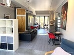 Come see this large furnished Mission District industrial studio with 14 foot ceilings with exposed metal beams. Located in the heart of the Mission on 20th St and Bryant, it's close to many restaurants, bars, shops and MUNI lines. Unit features: ~ Fully furnished with bed, living room area with TV, dining area and kitchenette. ~ Cement flooring throughout ~ Private patio ~ Approximately 700 square feet ~ 14 foot ceilings with exposed metal beams ~ Washer and dryer in building ~ Partition between bedroom and living room ~ One pet negotiable ~ All utilities included - PG&E, water, garbage, internet, TV (YouTubeTV, Max, Netflix)