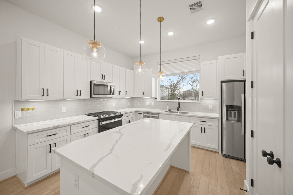 Welcome home to contemporary design and modern comfort at 2811 Anita St. This beautifully finished home features luxury vinyl plank flooring throughout,an upgraded quartz island,stainless steel appliances,shaker cabinets,and a modern glass backsplash in an elegant patterned design within the open-concept kitchen. Enjoy abundant natural light,high ceilings,and a spacious second-floor living area ideal for entertaining. The primary bedroom and bathroom offer Downtown views for a true city-living experience. Conveniently located with quick access to downtown attractions,major highways,dining,trails,Emancipation Park,and sporting stadiums. WASHER,DRYER AND REFRIGERATOR INCLUDED. Well maintained and move-in ready—schedule your showing today! MLS# 75179573
