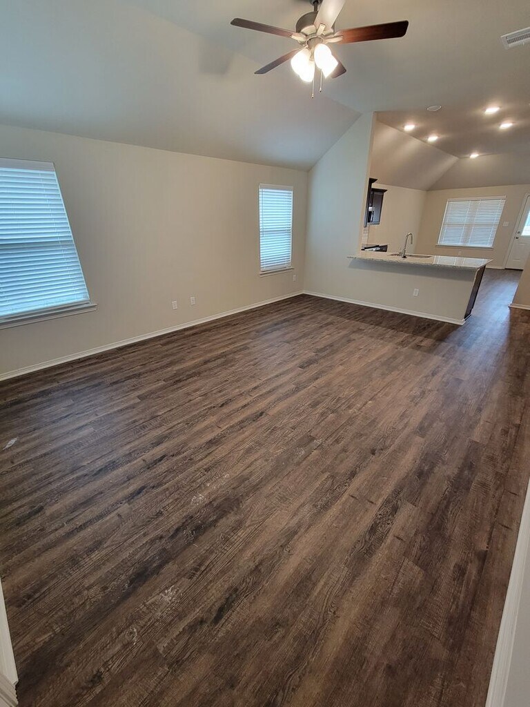 Bryan, New construction- 3 bedroom / 2 bath / 2 car garage - Fenced in back yard, Vinyl flooring in LR, Kitchen, Dining area, Bathrooms & Utility Room.. Carpet in Bedrooms. Large Walk in closet in Master Bedroom. 2" blinds throughout home. Approximately 1,329 heated space. - Separate Utility room for Washer & Dryer. Home includes Central Air and Heat. Very short distance from Bonham Elementary School. Washer/Dryer not included with property.