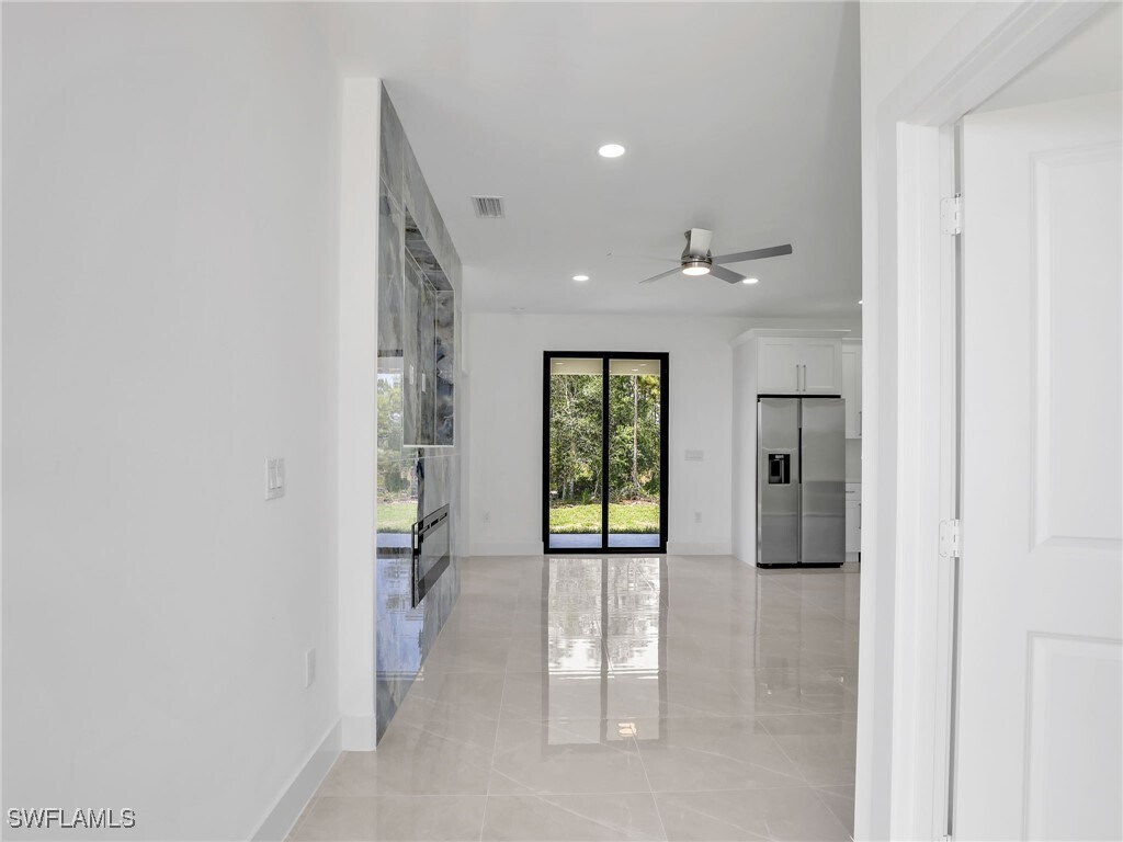 Beautiful brand-new 4-bedroom,2-bath home with tile floors throughout,a modern kitchen with waterfall island,and a spacious living room with fireplace. Enjoy impact windows and doors,a 2-car garage with epoxy floor,and great outdoor space with a tiled terrace and outdoor kitchen. Located on a quiet dead-end street for more privacy and only 17 miles from Fort Myers Airport. Move-in ready and easy to maintain — a perfect place to call home!