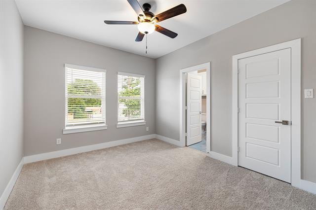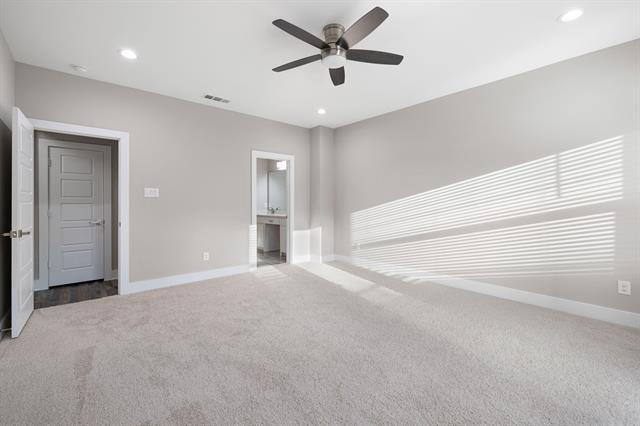 Modern 3-bedroom, 2.5-bath half duplex in Dallas near Trinity Groves area and major highways. Private gated entry leads into a spacious layout with all bedrooms upstairs. Primary suite features a balcony, dual vanities, large walk-in shower, and oversized closet. Secondary bedrooms include ceiling fans and Jack-and-Jill bath. Expansive backyard with covered patio. Convenient location close to downtown Dallas, dining, and entertainment. Don't hesitate to schedule a tour and apply!