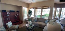 Beautiful golf course property at Trilogy at Vistancia---an ACTIVE ADULT COMMUNITY. The view goes on forever. No houses across the golf course. You have mountain views and incredible sunsets. This is Accredo model with 2 bedrooms/2.5 baths/den. Has a courtyard in the front and a patio in the backyard so you are never without sun. Open floor plan with dining room; family room; morning room; den; seating area and laundry room. SS appliances and granite countertops in the kitchen,partially remodeled. Tons of cabinets. Upgraded new floors too. Master bedroom has door to patio and bay window. Lots of privacy since golf path is on the other side of the course. Close to the front of the community and all the amenities. 48 hour notice is required while tenants are in residence.