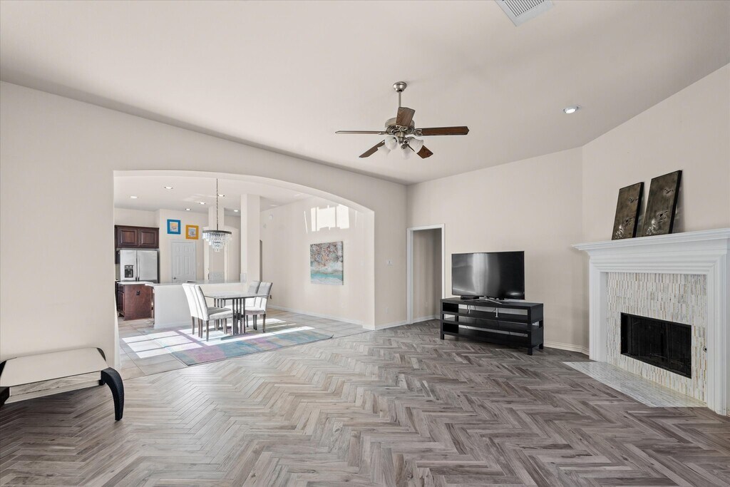 Welcome home to this beautifully spacious single story home located in the highly sought after Master Planned Community of Firethorne. Zoned to incredibly acclaimed Katy ISD Schools and situated in a lovely cul-de-sac. Home features soaring high ceilings,beautifully designed herringbone wood flooring,gleaming white quartz countertops in the kitchen,designer tile backsplash and stainless steel appliances . Home includes a separate office space,formal dining,open concept kitchen,living,and breakfast area. Large Primary bedroom,en suite bathroom with double sink vanity,separate glass shower,soaking tub & large walk in closet. Cozy covered patio complete with outdoor fireplace. Washer,dryer and refrigerator included. Amenities include catch and release fishing,nature trails,tennis courts,gym access,playgrounds,resort style pool with splash pad and water slides. Available furnished for an additional monthly fee. Don't miss the opportunity to call this home today! MLS# 91224022