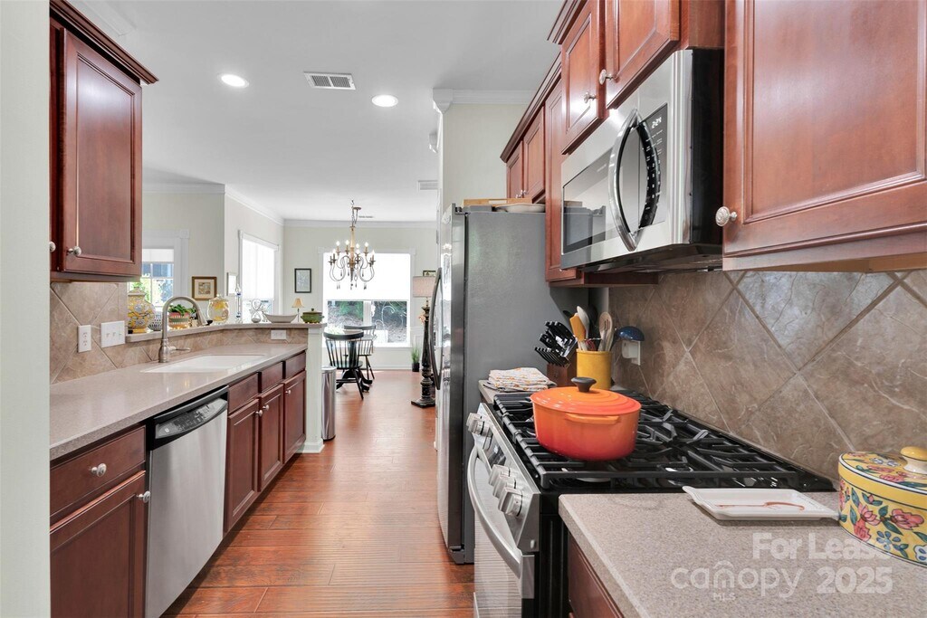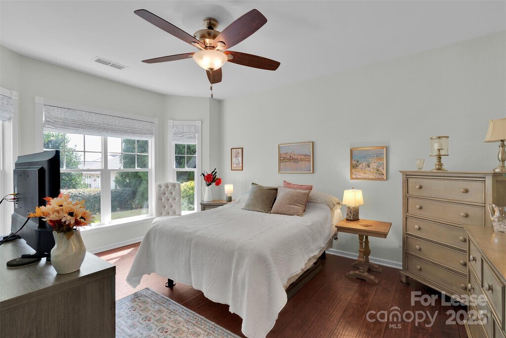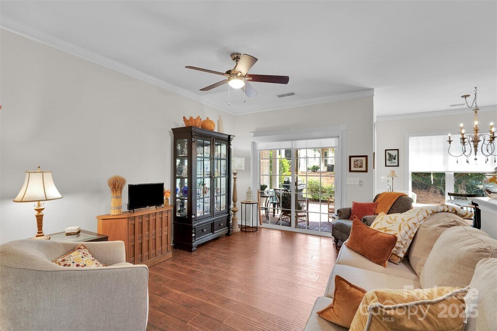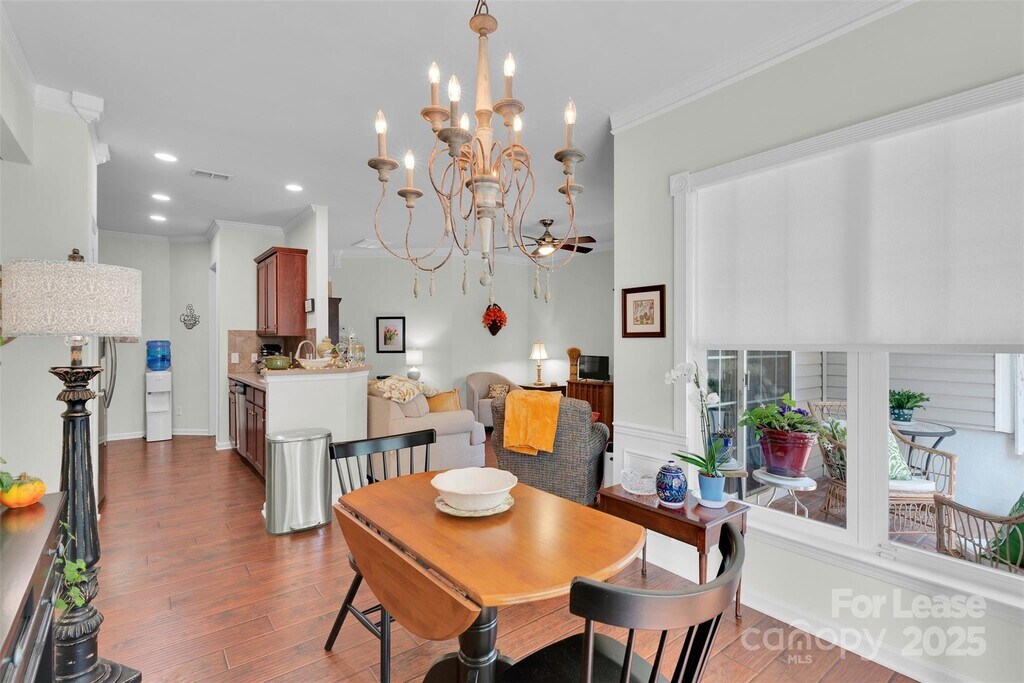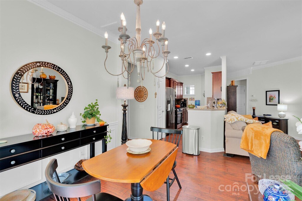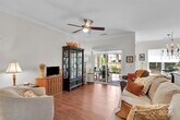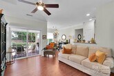 Welcome to this meticulously maintained 2-bedroom,2-bath villa that’s truly move-in ready! Hardwood floors flow throughout the open,light-filled layout,creating a seamless connection between the kitchen,dining,and living areas. The kitchen is a standout,featuring new Frigidaire stainless steel gas range and over-the-range microwave,Corian countertops,and abundant cabinet space. This home has been thoughtfully upgraded for comfort and efficiency: a new HVAC system was installed in 2022,a highwall ductless heating/cooling split system (mini-split) was added in the garage in 2023,and a new water heater was installed in 2025. Custom blinds and Roman shades complete the stylish finishes throughout. The spacious primary suite boasts a walk-in closet and private ensuite bath,while the versatile secondary bedroom is ideal for guests or a home office. Step outside to enjoy your mornings and evenings on the covered patio overlooking the landscaped yard. Located in the highly desirable 55+ community of Sun City Carolina Lakes,this home gives you access to resort-style amenities including a golf course,clubhouse,indoor and outdoor pools,tennis and sports courts,walking trails,and lake activities. Convenient shopping,dining,and everyday essentials are just minutes away.