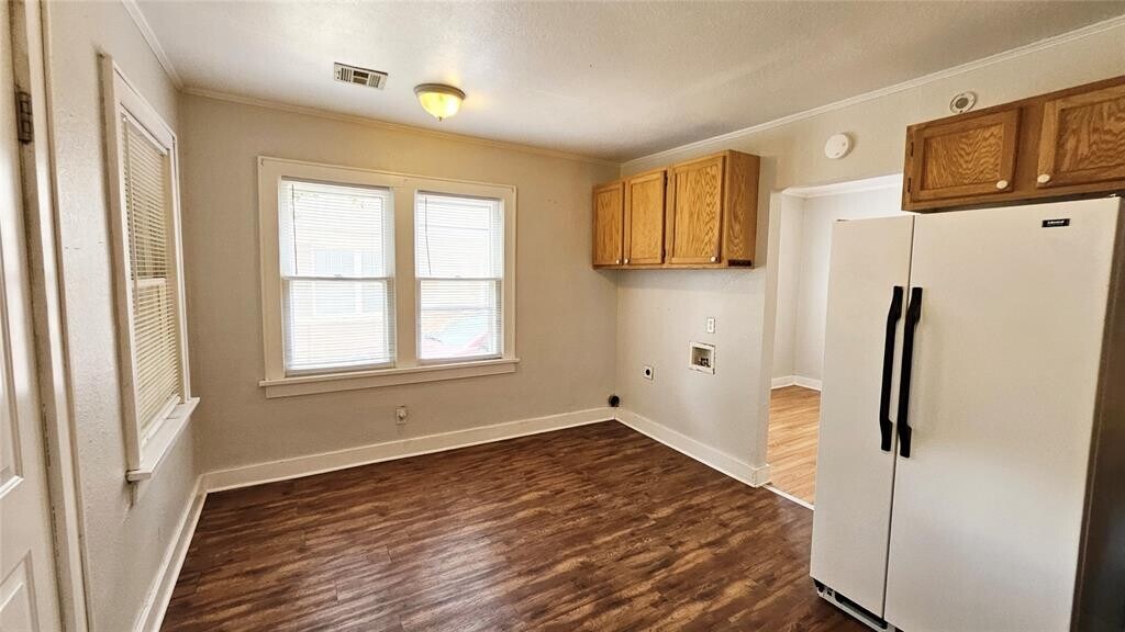 Now available in the desirable Crestwood area of NW OKC,this inviting residence blends classic appeal with everyday practicality. Wood flooring runs throughout and is complemented by a fresh,contemporary paint scheme. The main living space is spacious and filled with sunlight,anchored by a striking fireplace that adds warmth and personality. A dedicated dining room sits just off the kitchen and offers flexibility for dining,work,or creative use. The kitchen includes a refrigerator,ample prep surfaces,and an adjacent utility space that can accommodate extra storage or casual seating. Both bedrooms are well proportioned with large windows,and the bathroom has been nicely updated. While the rear garage apartment is occupied,this home includes two reserved front parking spaces and a private,fully enclosed yard. Enjoy living in a highly sought-after location with easy access to everything NW OKC has to offer!