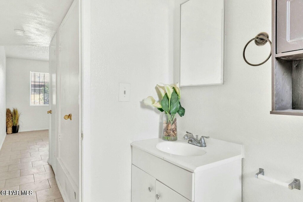 Cozy unit! Stove and refrigerator included!!! Offers 2 bedrooms and 1 bathroom. Ceramic tile throughout. Spacious living area. Good size bedrooms. Centrally located. Less than 10 minutes away from Ft.Bliss. Nice mountain views! Evaporative air conditioner. Approx. 750 sqft. In addition to the monthly rent tenant will pay a flat fee of $55.00 for the use of water and trash. Come and make it yours! Make ready/cleaning in progress.