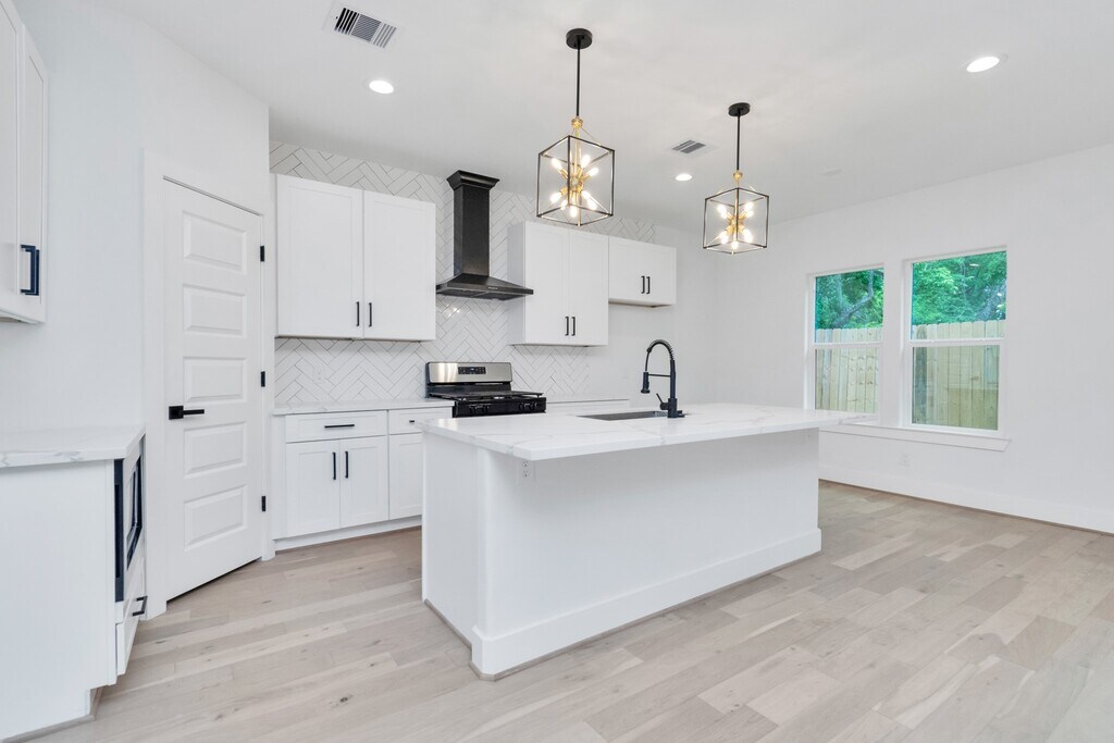 Welcome to DREW STREET! This stunning modern home situated on an OVERSIZED LOT offers the perfect combination of luxury,functionality,and city living just minutes from Downtown,Midtown,and the Medical Center. Featuring 3 bedrooms,3.5 baths,and a 2-car garage,this home showcases an open-concept layout with high ceilings,elegant finishes,and abundant natural light throughout. The gourmet kitchen complete with quartz countertops,a spacious island,stainless steel appliances,and custom cabinetry. The inviting living area flows seamlessly to a private balcony,ideal for morning coffee or evening relaxation. Each bedroom features its own en-suite bath,providing ultimate privacy and comfort for guests or family. The primary suite includes a spa-inspired bathroom with a soaking tub,double vanity,and large walk-in closet. Enjoy the convenience of a prime location close to University of Houston,Toyota Center and Emancipation Park. Experience modern living at its finest! MLS# 90314791