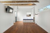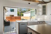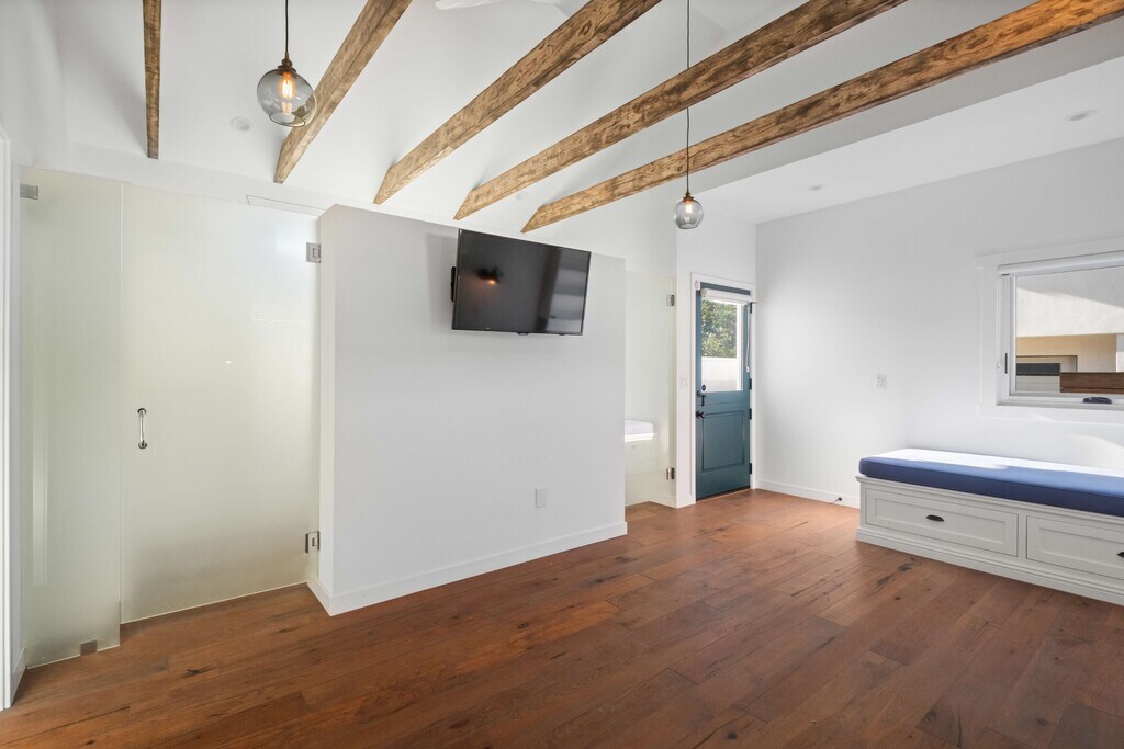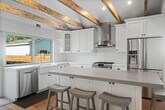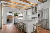Charming, fully remodeled 3-bedroom, 2.5-bath single-family home with extensive upgrades, ideally located in prime West LA just minutes from Westwood, Culver City, and Santa Monica. This bright residence features an open-concept floor plan with beautiful wood flooring throughout, creating a warm and inviting atmosphere. The living room flows seamlessly into the kitchen, perfect for both everyday living and entertaining. The upgraded kitchen boasts a large center island with seating, stainless-steel built-in appliances, and abundant cabinet and counter space. Sliding doors and windows behind the sink open to a private deck, ideal for outdoor dining and entertaining. The deluxe primary suite offers a spa-like bath with a glass-enclosed rainfall shower and built-in seating, along with a generous walk-in closet featuring custom built-in dressers and ample storage. Additional highlights include convenient in-home laundry with extra storage and thoughtfully designed upgrades throughout. Central AC and heat.