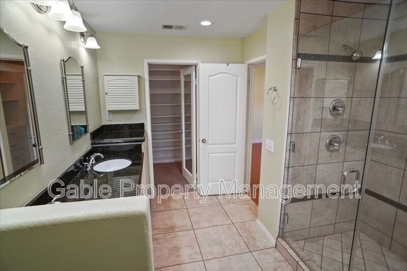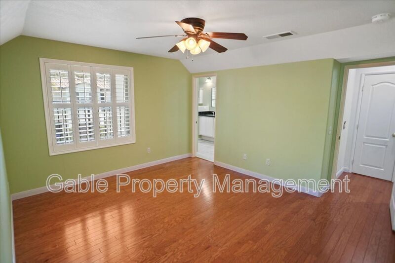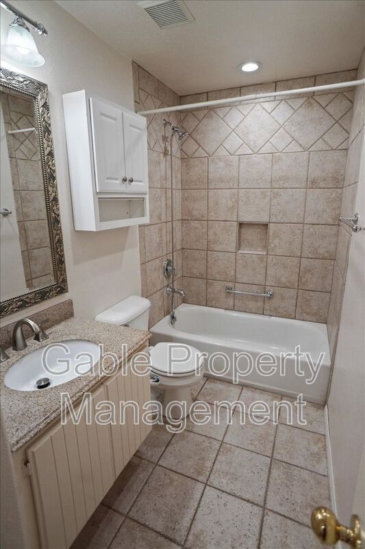Imagine stepping into a beautifully designed home nestled in the desirable Shutter Tract of Northpark. This stunning residence greets you with charming curb appeal that instantly makes you feel welcome. As you enter, you’re drawn to the heart of the home—the upgraded kitchen. With its custom white cabinets, spacious island, and sleek stainless steel appliances, this kitchen is perfect for culinary adventures. The new microwave and designer backsplash add a touch of elegance, while a window lets in natural light and offers a lovely view of the backyard. Adjacent to the kitchen, a cozy dining area shines with an upgraded light fixture, setting the scene for memorable meals and gatherings. The large living room invites you in with high ceilings, a stylish tile-accented fireplace, and a ceiling fan that ensures comfort year-round. Beautiful wood floors flow seamlessly throughout the space, creating a warm and inviting atmosphere—no carpet in sight! Beneath the stairs, a built-in desk area provides the perfect nook for work or study, while a conveniently located powder room on the main floor adds practicality for guests. Venture upstairs to discover three spacious bedrooms, each featuring ceiling fans and mirrored wardrobes that reflect the natural light. The master suite is a true retreat, complete with an attached bathroom featuring dual sinks, a walk-in glass shower, and a generous walk-in closet. The hallway bathroom, elegantly upgraded with a stylish vanity and shower/tub combo, ensures comfort for family and guests alike. Two car attached garage with new epoxy flooring. Step outside to a nice-sized backyard, ideal for summer barbecues, outdoor play, or simply enjoying a quiet evening under the stars.