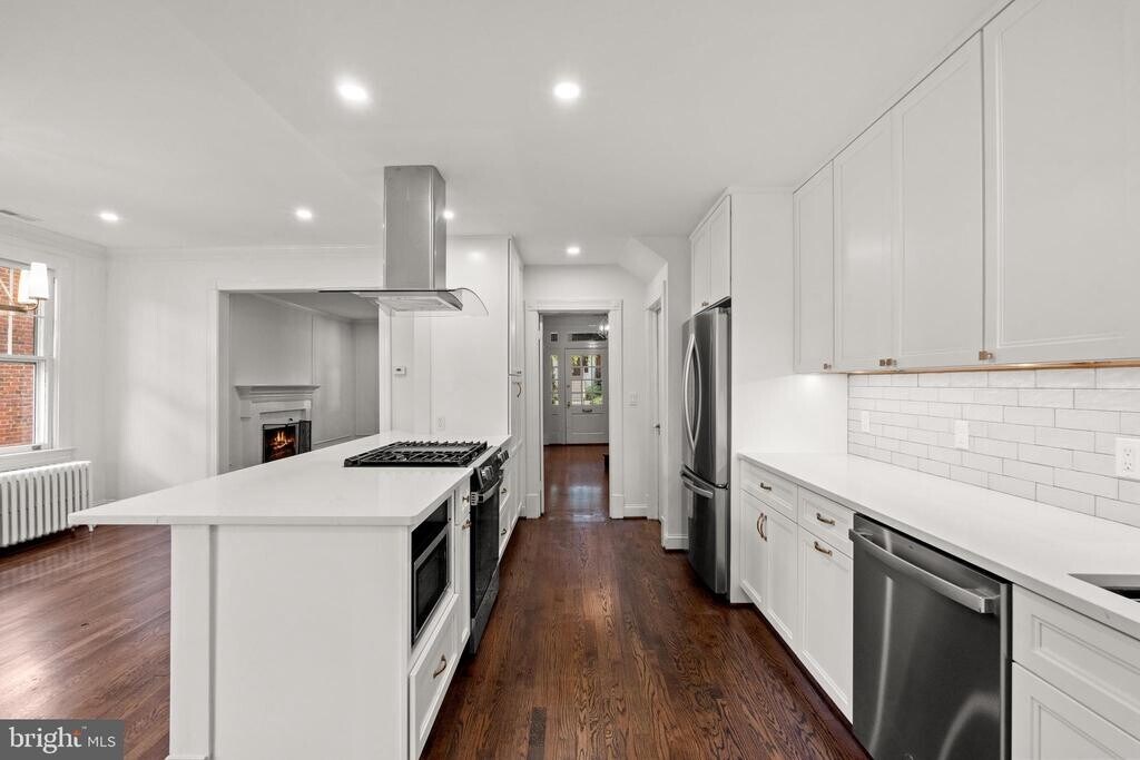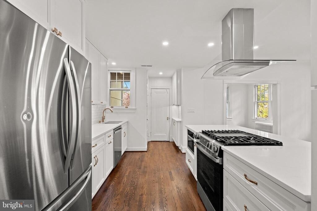 Welcome to 2814 Bellevue Terrace NW, a newly fully renovated gem in the heart of Cathedral Heights and Observatory Circle. Set on a quiet, tree-lined street just steps from the National Cathedral, this light-filled duplex combines historic charm with modern sophistication. From the fabulous covered front porch, so peaceful you can hear the Cathedral bells, to the two-car under-home garage and additional secure parking accessed by a motorized rear gate, every detail has been designed for easy and elegant city living. Inside, high ceilings and expansive windows flood the home with natural light, accentuating the beautifully refinished hardwood floors and restored millwork. A brand-new entertainer’s kitchen anchors the main level, flowing seamlessly into the dining and living areas for both everyday comfort and effortless entertaining. Upstairs, generously scaled bedrooms, upgraded closets and spa-quality baths showcase timeless design with modern finishes. Outdoor spaces, both front and rear, invite relaxation, offering privacy and convenience rarely found in this location. The fully finished lower level provides exceptional additional living space, featuring a spacious recreation room, a half bath, a large storage room, a full laundry area, and direct access to the two-car garage. With its exceptional scale, high ceilings, private parking, and fully renovated interiors, 2814 Bellevue Terrace NW offers a rare opportunity to experience the best of Northwest Washington, near embassies, parks, and the iconic Washington National Cathedral.