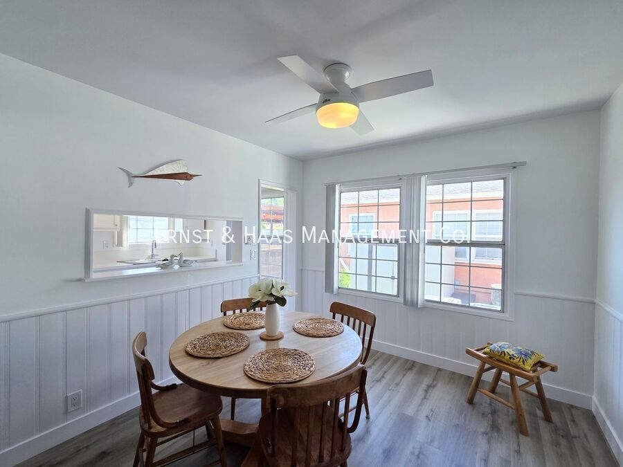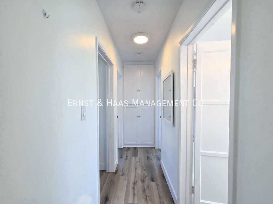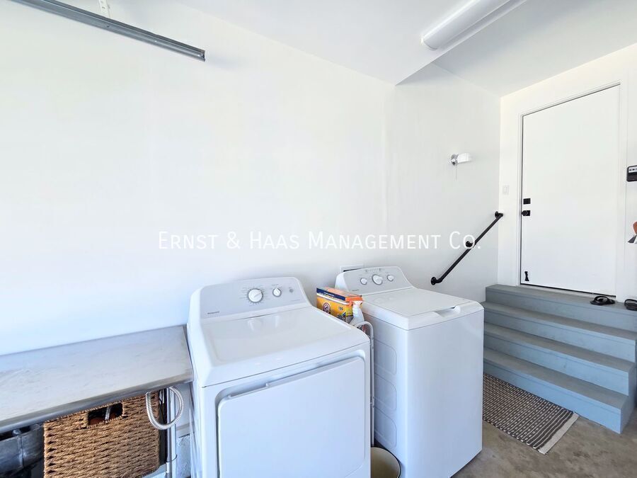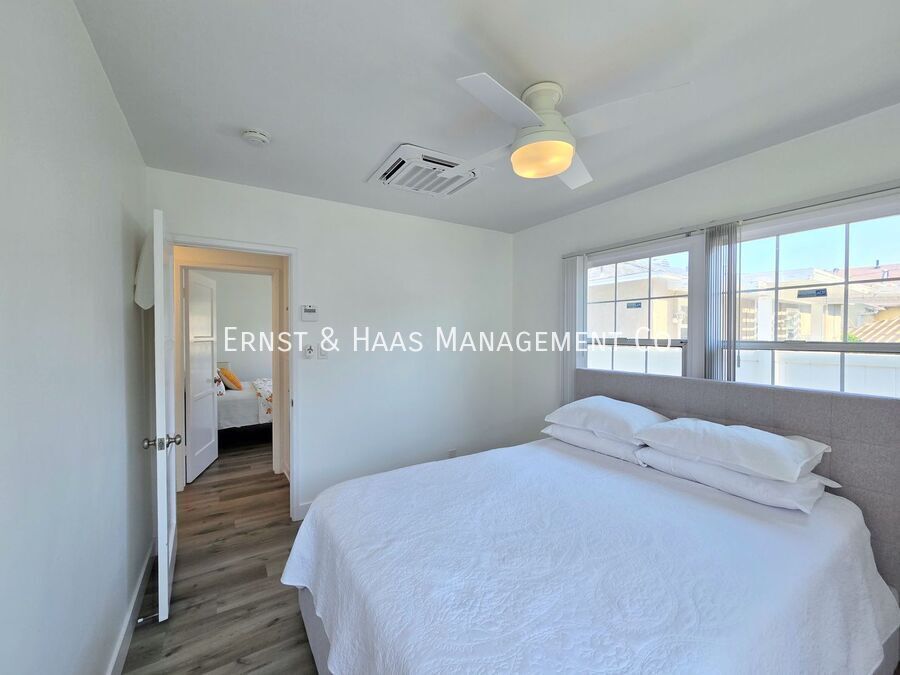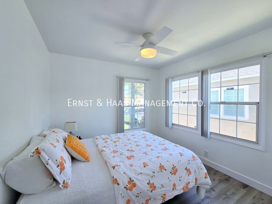 Charming and fully remodeled 2-bedroom home located in a desirable Lakewood neighborhood. This home has been thoughtfully updated throughout, featuring modern laminate flooring, upgraded dual-pane windows, fresh interior paint, and a bright, clean aesthetic. The kitchen has been beautifully renovated with crisp white cabinetry, quartz countertops, and a convenient attached pantry area, offering both style and functionality. The living spaces are open and inviting, with plenty of natural light. Both bedrooms are well-sized and comfortable, and the bathroom has been tastefully updated with modern finishes. Enjoy a spacious rear yard—perfect for outdoor living, entertaining, or relaxing. The property also includes a 2-car garage with direct access to the home, along with a washer and dryer located in the garage for added convenience. Additional features include window blinds throughout and air conditioning for year-round comfort. Located in a quiet, well-maintained neighborhood close to shopping, dining, and major freeways, this home offers a great combination of comfort and convenience. For more information on this or any other available property, please contact Ernst & Haas Management at , or visit us online at