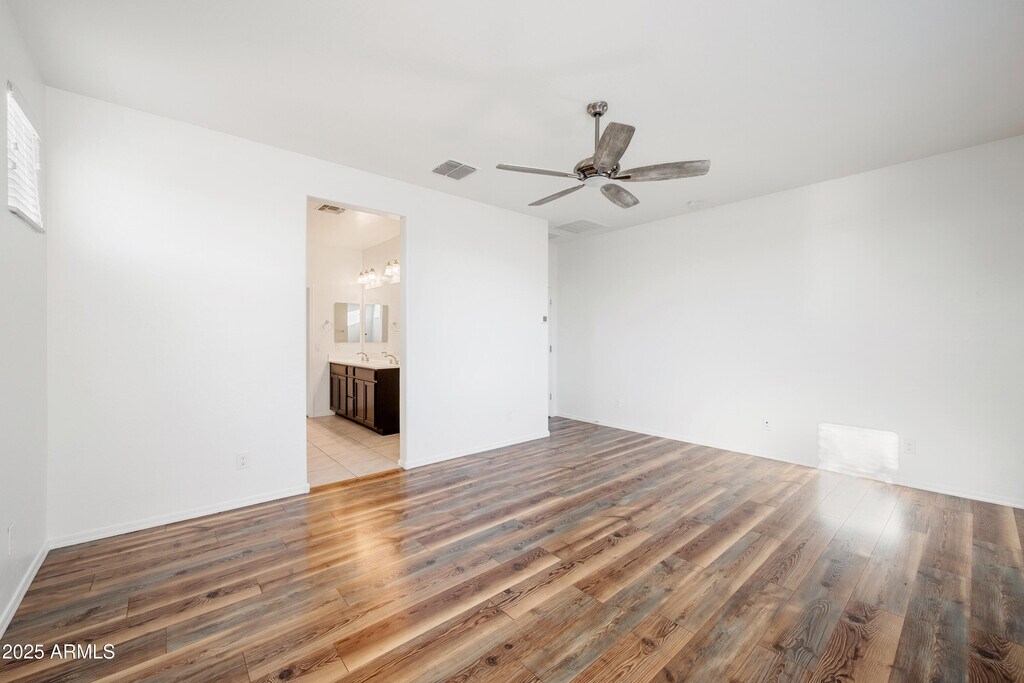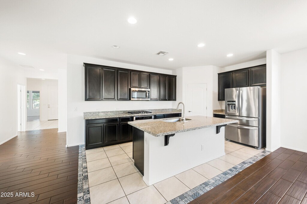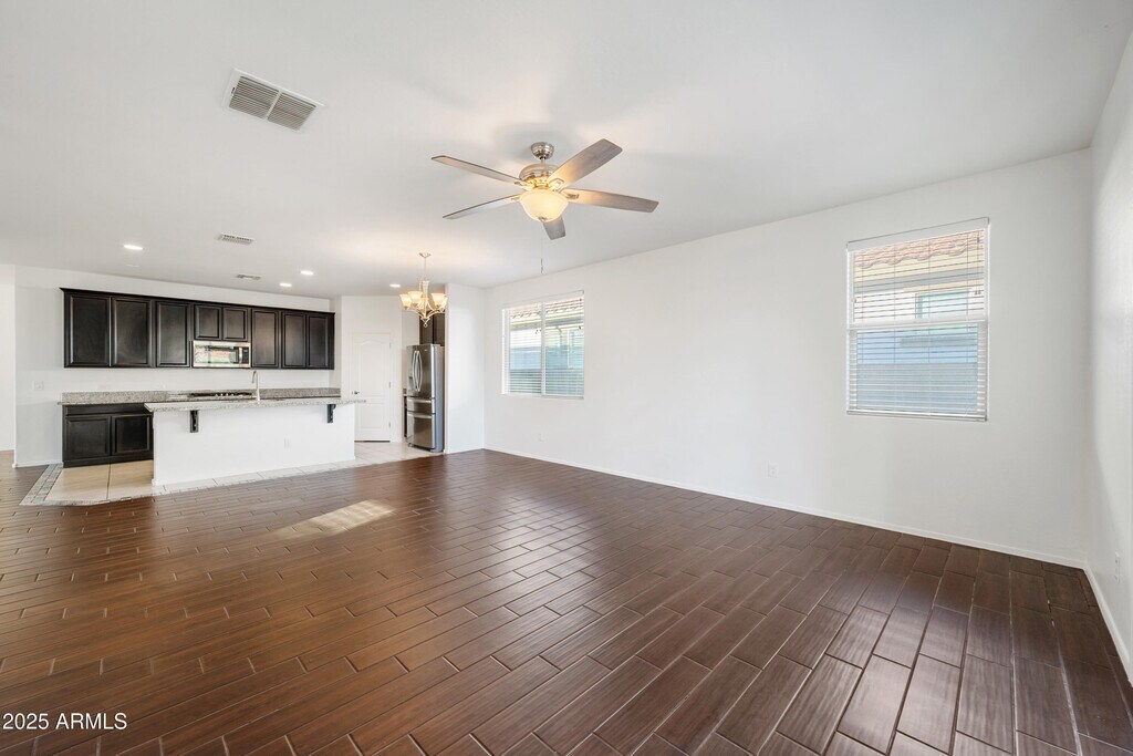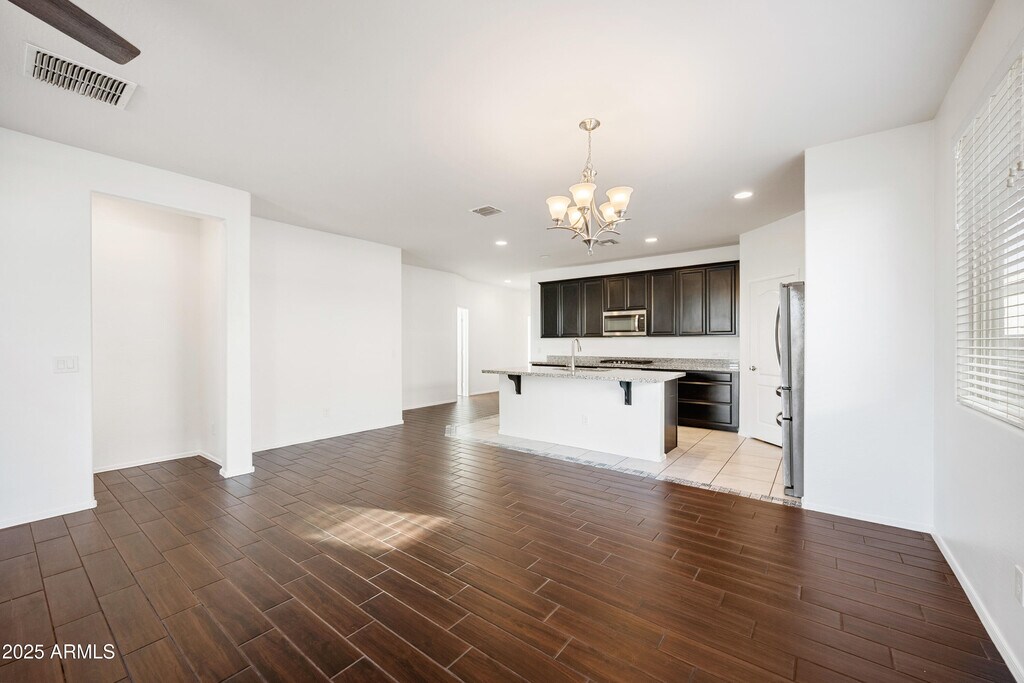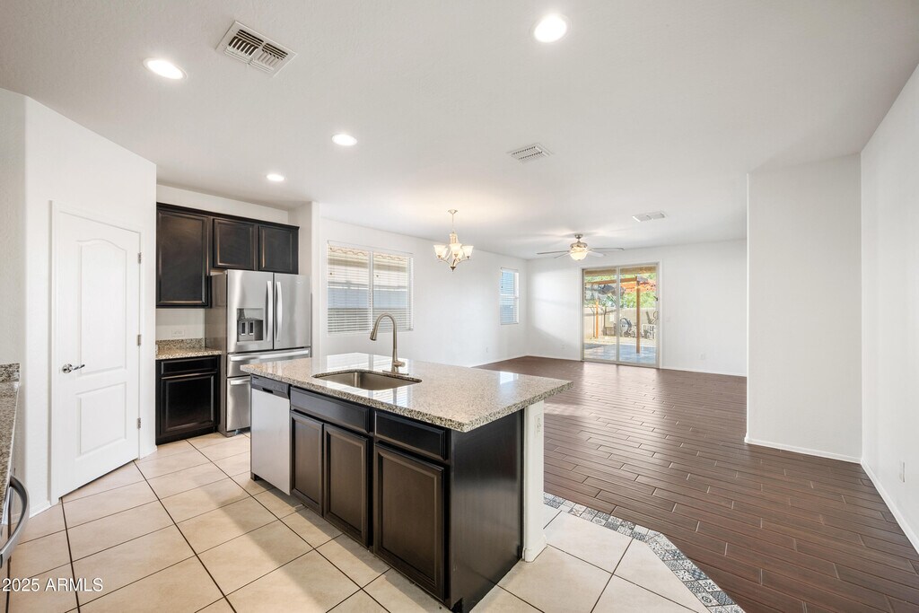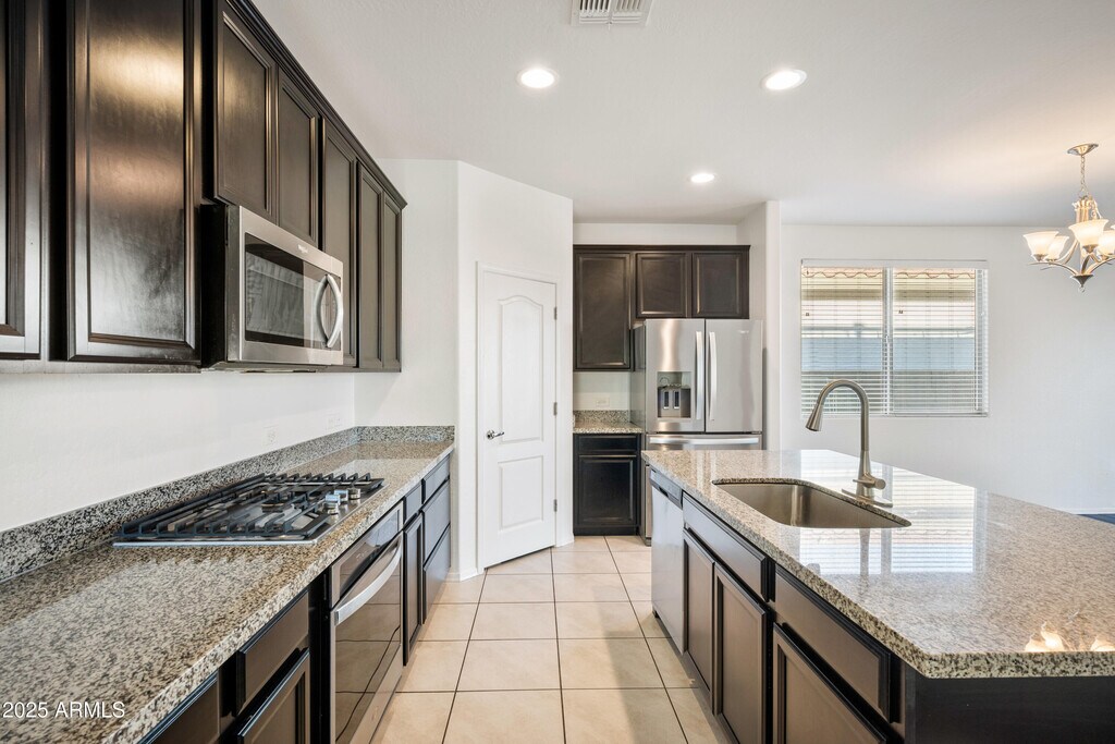Beautiful 3-bedroom plus den,2-bath home with split floor plan and numerous upgrades! Freshly painted interior with tile and luxury vinyl flooring throughoutno carpet. The open kitchen features Energy Star gas appliances and upgraded cabinets with soft-close doors and drawers,flowing into the dining area for easy entertaining. Primary suite includes upgraded insulation for added noise control,double sinks,and a large walk-in closet.