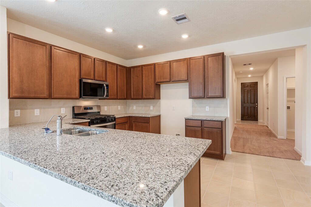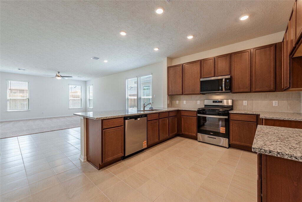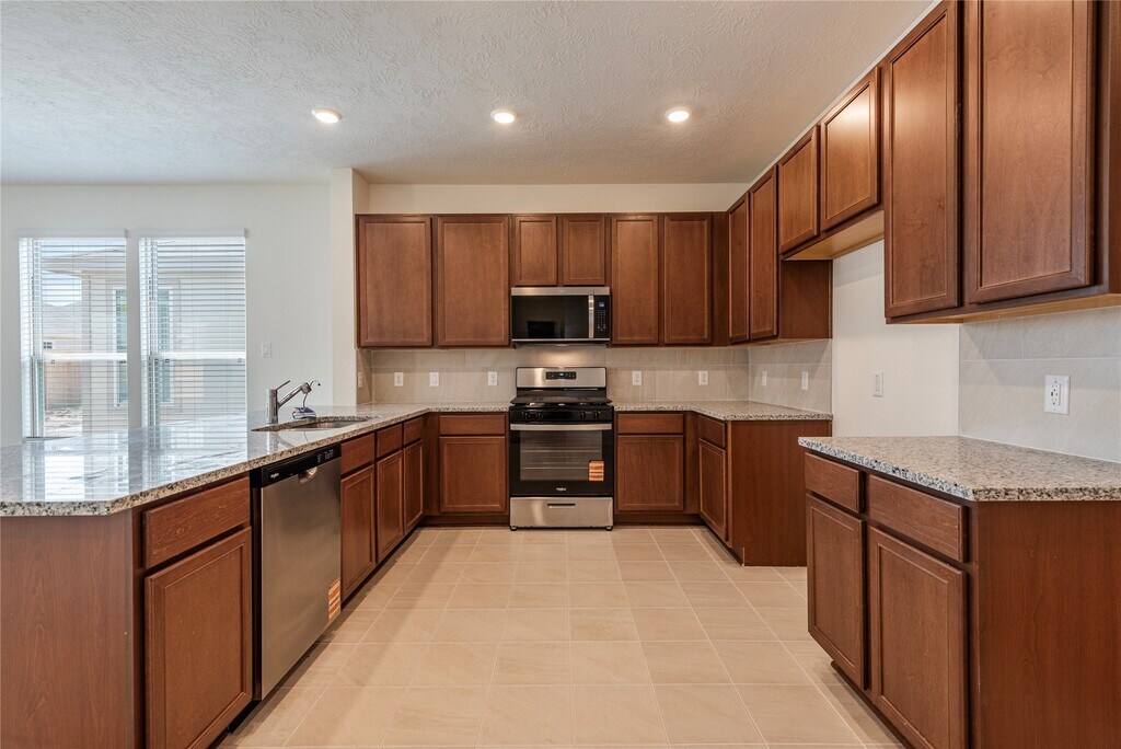 APPLIANCES INCLUDED: REFRIGERATOR (Washer and Dryer can be negotiated). Welcome Home to Olympia Falls! This is KB Home's most spacious one story floor plan in Olympia Falls,offering 3 bedrooms,2 bathrooms,and a flex space. The home has a brick elevation,tile flooring,extended entry,high ceilings,and an open great room. The kitchen has granite countertops,tile backsplash,stainless steel Energy Star® appliances,and 42-in. cabinets. The primary suite has dual vanities,a 42-in. Kohler Master Windward® tub,and separate shower. Additional home features a covered patio and a fully fenced back yard. Situated off Fort Bend Tollway,Hwy 288,and Beltway 8,commuters enjoy the ease of access to downtown Houston,Pearland,Sugarland,and Texas Medical Center. Fort Bend Town Center is only a few miles away. MLS# 23269202