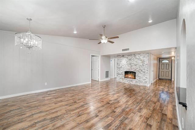 Five bed room three full bath fully renovated new roof in June 2023. New paint inside and out side new vinal flooring. Two bath rooms updated and third new one added with latest feathers. all new light fixtures and recess light in Den, hall way. new fire place modified. back gutter added. close to all shopping and common areas.