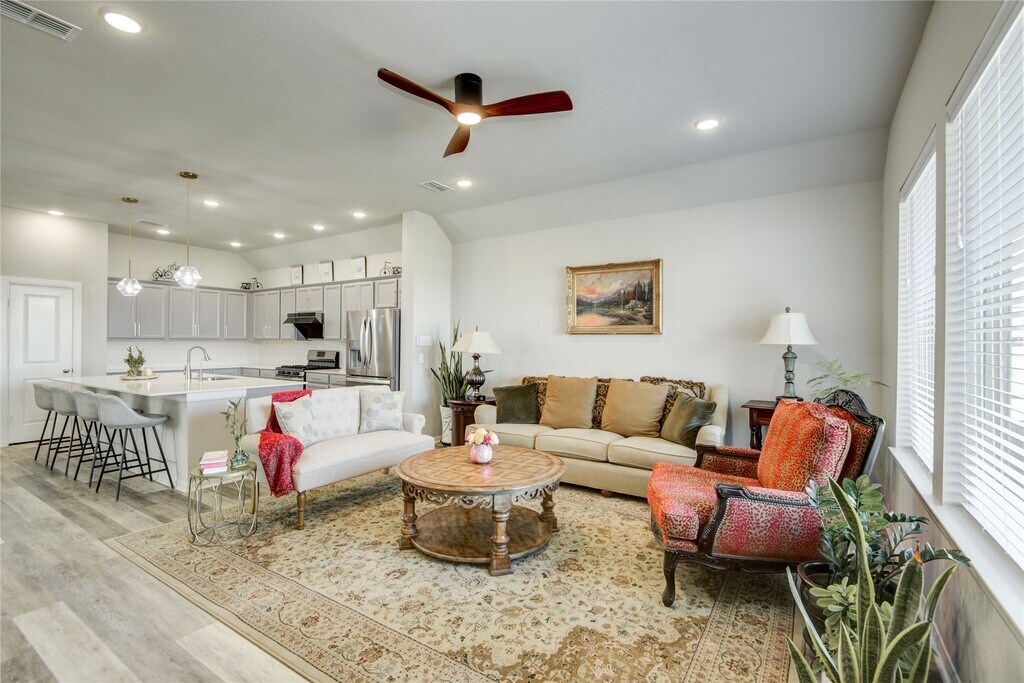 Incredible David Weekly Home in the master-planned community of Jordan Ranch. The home features 3 bedrooms,2 full baths,2 car garage,and a bright open concept floor plan - perfect for entertaining! The chef’s dream kitchen with granite countertops,stainless steel appliances,and a large island that opens to the family room. The private primary suite has dual vanity,a large shower,and a spacious walk-in closet. Additional upgrades include vinyl plank flooring throughout the whole house,custom built-in cabinets in the laundry room,garage storage racks,sprinkler system for front and back yard. Community amenities include an on-site farm,fitness center,a resort-style pool with lazy river,playground,walking trails,and tennis courts. Easy access to I-10 and Westpark Tollway. There are a ton of restaurants and shops in the nearby Katy area. La Centerra at Cinco Ranch is only a short drive away. The new HEB just 5 minutes down the road. Don’t miss this spectacular home ! MLS# 76896714