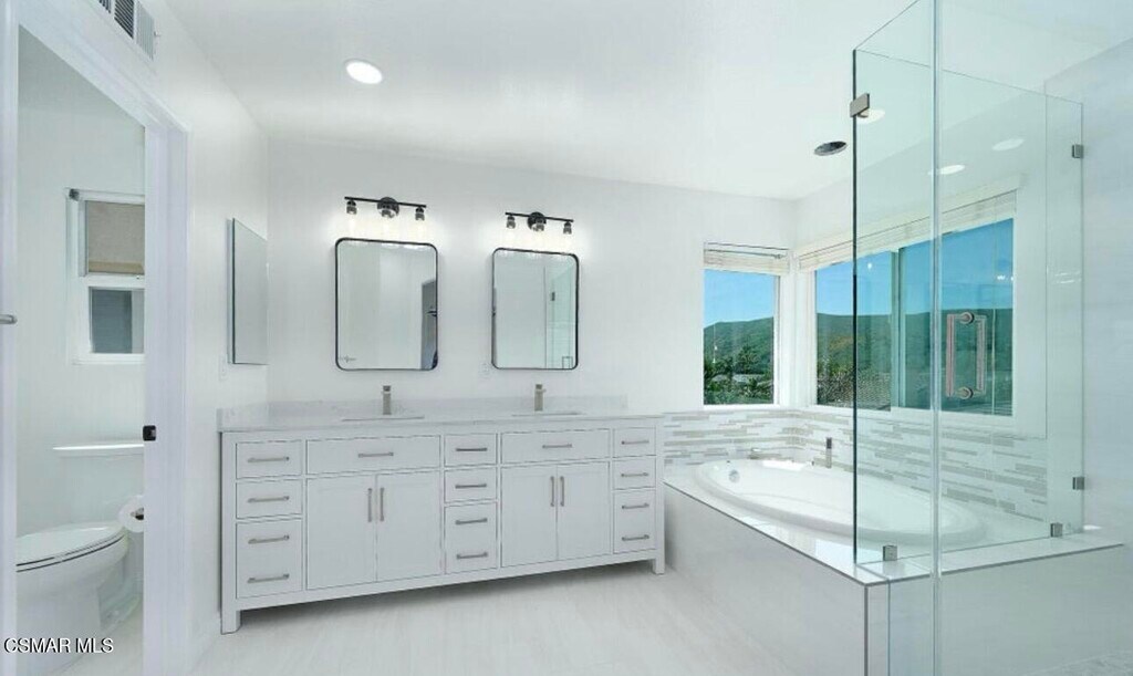 Located in the beautiful gated community of Eagle Ridge/Bellagio, this stunning single family residence is situated on a very family friendly street. Recently remodeled from top to bottom, this home is an entertainers delight. As you enter, you'll be welcomed by an abundance of bright natural light. The home is complete with 4 bedrooms: 3 upstairs and one private bedroom down. With all newly updated bathrooms, stunning modern light fixtures throughout, and new hardwood flooring, this spacious property is a must see. Conveniently located near shopping, dining, hiking trails, and parks. This Mediterranean home is situated on the border of Westlake Village and Thousand Oaks and has a great community pool. One year lease term minimum. All applicants must apply via RentSpree. Welcome Home!