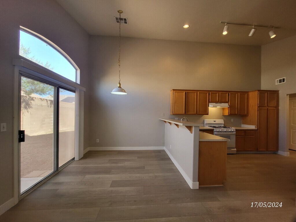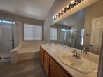 Beautiful Single-Story Home with Open Floor Plan Welcome to this spacious and inviting single-story home featuring a modern open layout, fresh paint, and updated flooring throughout. Living Areas: The open concept living and dining spaces boast vaulted ceilings, abundant natural light, and a seamless flow that's perfect for both relaxing and entertaining. Kitchen: A bright kitchen with ample cabinet space, breakfast bar seating, and all major appliances included. Bedrooms & Bathrooms: Generously sized bedrooms with plenty of closet space. The primary suite offers a private bath with dual sinks, a separate shower, and a soaking tub. Outdoor Space: Low-maintenance front yard with desert landscaping and a two-car garage for convenience. Conveniently located near schools, shopping, dining, and freeway access—this home offers comfort, style, and functionality in one package!