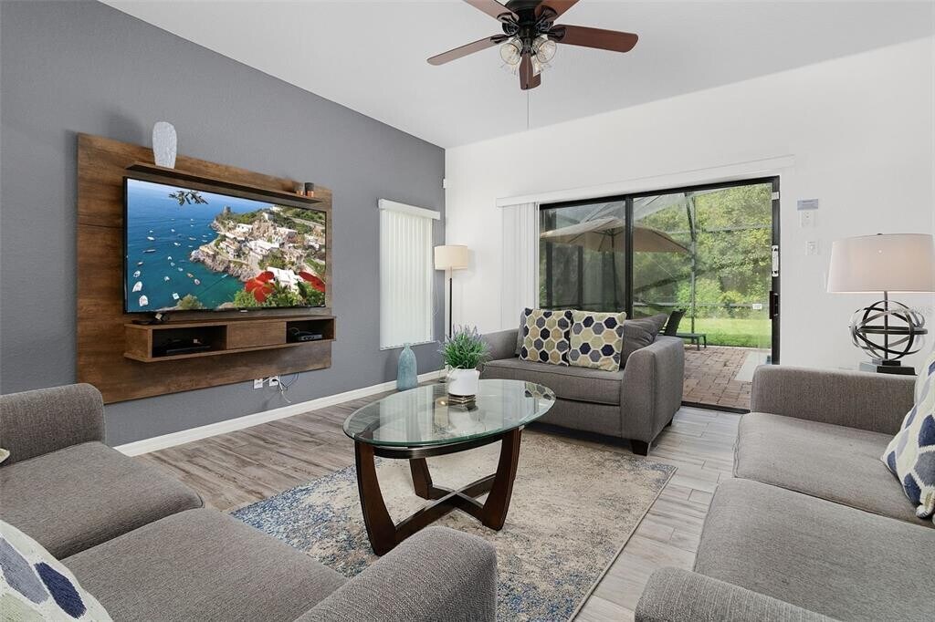 Discover a beautiful two-story 4-bedroom,2.5-bathroom FULLY FURNISHED home with a captivating POOL in the desirable Westside Tuscany community. It's in a super convenient spot–just minutes away from Disney Parks,Sunset Walk,and Margaritaville,golf courses,restaurants,parks and more. The living area opens up to a screened-in pool facing the west,and you also get a cool cabana bath and peaceful forest views. Upstairs,there's a big main bedroom with its own bathroom that has a large tub,separate shower,and two sinks. Three more bedrooms share another bathroom on the second floor. Feel free to utilize the brand-new washer and dryer,as well as the updated garage door switches,pool heater,and pool cartridge filters. Additionally,the AC unit filters have been replaced for optimal performance. The community takes care of the yard,basic cable,and internet,so you're all set there. MLS# S5142633