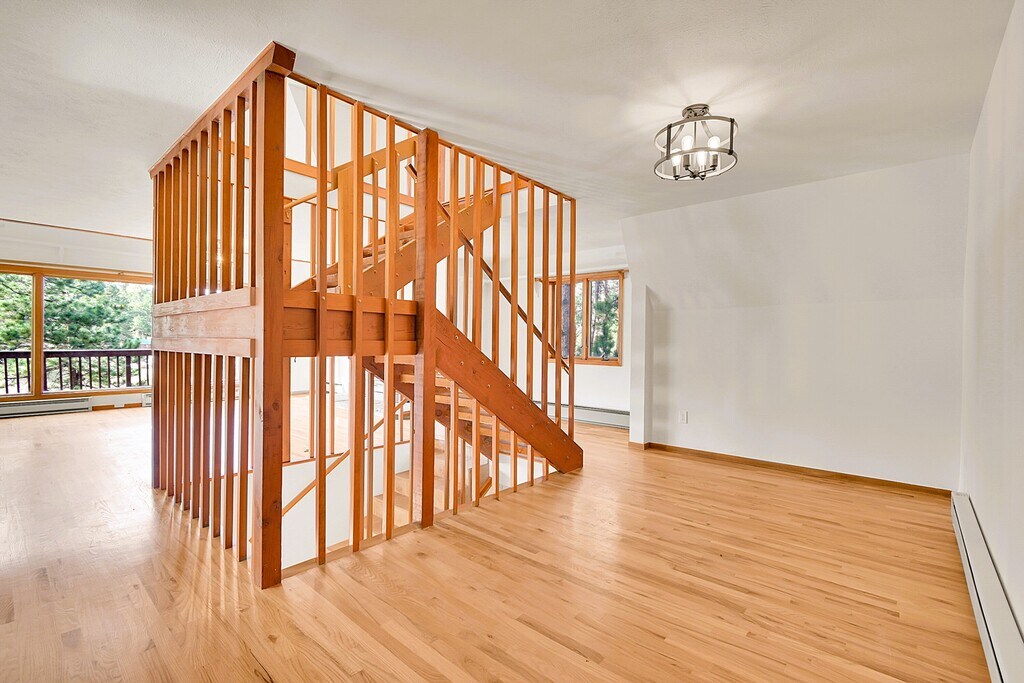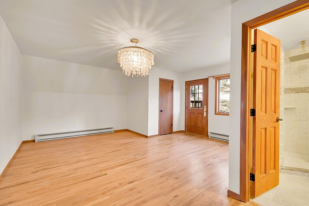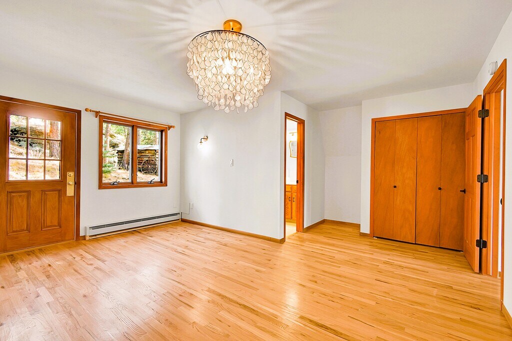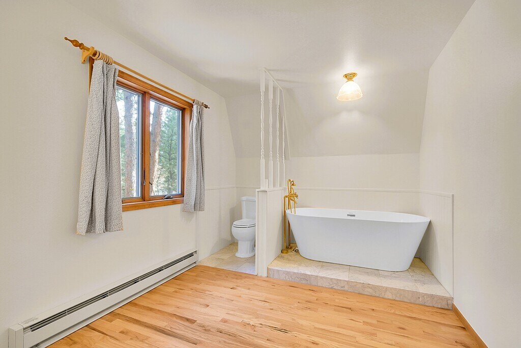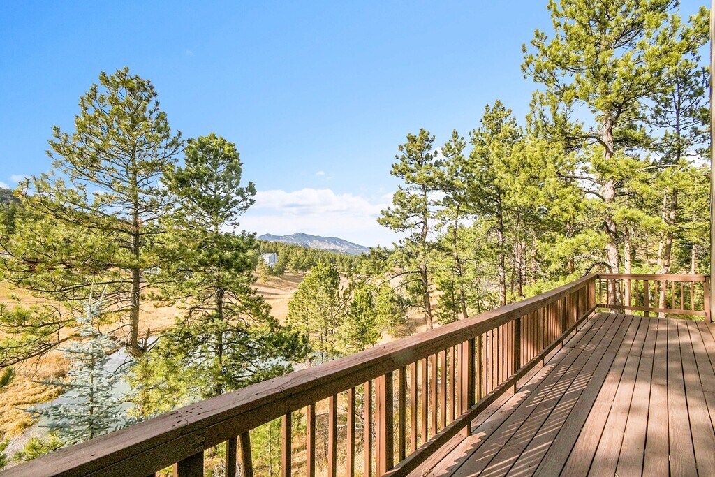 LIVE THE MOUNTAIN LIFESTYLE! Welcome to a truly special long-term rental in south Evergreen, where nearly three acres of natural beauty surround an updated home overlooking its own private pond. The setting is exceptionally peaceful, offering quiet seclusion just a short drive from the heart of Evergreen. It's easy to lose track of time watching the wildlife by the water or simply enjoying the stillness of the property. An oversized deck stretches toward the pond, creating the perfect place to relax, entertain, or take in the views from sunrise to sunset. Inside, the home feels bright and welcoming, with vaulted ceilings, warm hardwood floors, and a fireplace perfectly placed to enjoy the mountain scenery. The kitchen has been thoughtfully renovated with quartz counters and sleek Samsung Bespoke appliances, creating a stylish and functional space for everyday living. The main level includes a generous primary bedroom with an upgraded three-quarter bath, along with a second sizeable bathroom that features a new soaking tub and marble details. Upstairs, a comfortable loft-style living area opens to lovely views and leads to three additional bedrooms, a full bath, and the laundry area. The lower level is a walk-out and serves well as a fifth bedroom with its own bathroom, or it can be used as a quiet office with inspiring views of the landscape. No smoking is permitted and no pets. Interested parties should submit an application and request a showing through the Mountain Haven Property Management website.