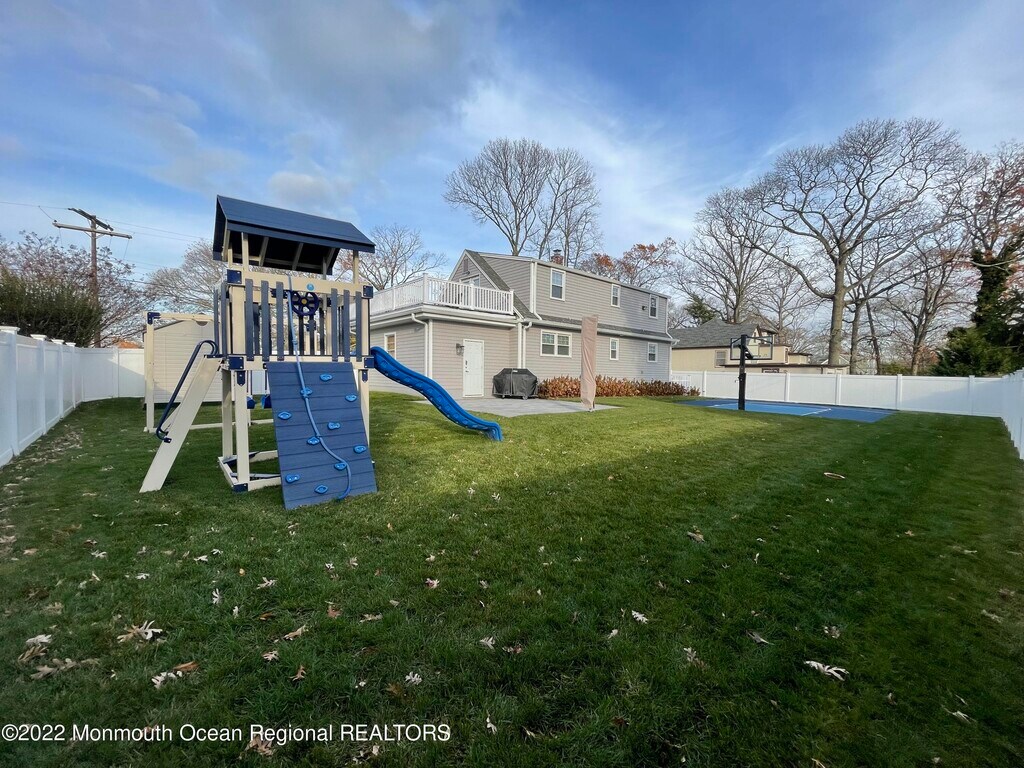 WINTER RENTAL: (Labor Day 2026-May 2027) Fully Furnished and Newly Renovated 4 bedroom 3 bath home in the heart of Oakhurst. Walk in to this clean and pristine cape code. The ground floor has a cozy living room,dining room with bay windows,kitchen with eat-in nook,newly renovated full bathroom,two large bedrooms and a one car garage. Upstairs you will find two more spacious bedrooms,a large outdoor fenced balcony and a full bathroom. The basement is finished and has a beautiful new bathroom. Backyard is fully fenced,has a vinyl swingset and a brand new half basketball court.