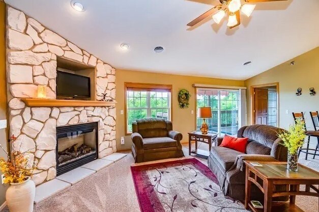 Southern Exposure, facing woods and protected wetlands, Privacy Plus! Open floor design, all 3 bedrooms separate from each other. Vaulted ceilings, switch-on gas stone fireplace, fire alarm, sprinklers, maple cabinetry, ample closets/storage. 1 of 2 balconies faces south with gorgeous views and an awning for sunny days. Water, Sewer, trash pick-up, snow removal and ground maintenance are included in HOA fees. 2nd full bath contains laundry closet. 2 car attached garage has built in workbench and cabinets with Epoxy floor. Well maintained one owner condo. Southern Exposure, facing woods and protected wetlands, Privacy Plus! Open floor design, all 3 bedrooms separate from each other. Vaulted ceilings, switch-on gas stone fireplace, fire alarm, sprinklers, maple cabinetry, ample closets/storage. 1 of 2 balconies faces south with gorgeous views and an awning for sunny days. Water, Sewer, trash pick-up, snow removal and ground maintenance are included in HOA fees. 2nd full bath conta...
