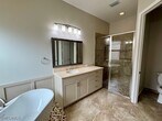 Beautiful rental in Riverstone. This gated community is located in North Naples. This home has 3 bedrooms,2 bathrooms,a 2 car garage and has solar power. There is a screened in lanai with preserve views and the property is fulled fenced in. When you enter this home you will notice the beautiful tiles that lead into the great room and kitchen. The kitchen has white cabinets with pull out drawers; a butler's pantry,SS appliances and quartz counters. Other features include: Custom blinds and fans throughout the home; custom closet organizers; soaking tub in the owner's bath and walk in shower. Large laundry room with a laundry tub and cabinets. The amenities included in this community are: Clubhouse,resort style pools and tennis and pickleball courts. Conveniently located near I-75,Gulf beaches,shopping and fine dining.