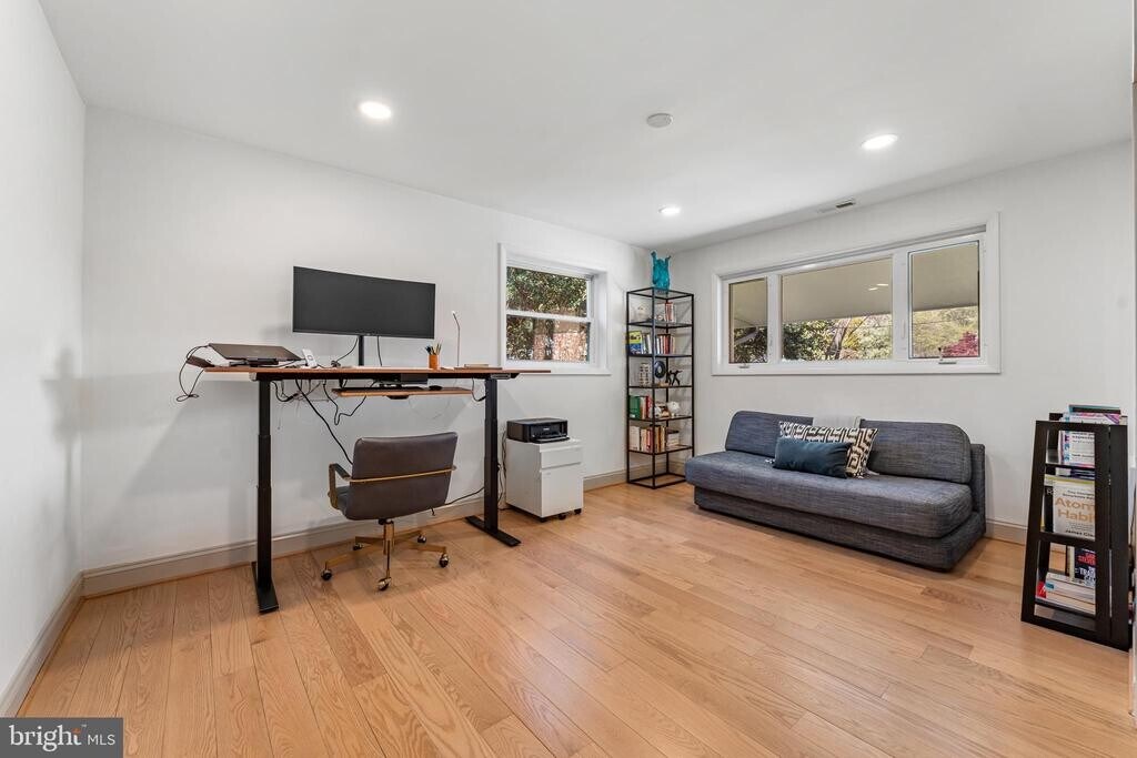 Welcome to this rare offering in the highly desirable Forest Hills, one of Northwest DC’s most sough-after, elegant and beloved neighborhoods!! Tucked into a lush, tree-lined setting, this beautifully renovated mid-century split-level residence offers an exceptional blend of architectural character, modern design, and serene indoor-outdoor living. From the moment you enter through the striking double doors, the home makes an immediate impression with its airy open layout, wide sight-lines, and beautiful views extending to the deck and lush landscaped backyard. Rich beech hardwood floors run throughout, while oversized windows and expansive glass doors flood the home with natural light and create a seamless connection to the outdoors. The main living space is both spacious and sophisticated, anchored by a dramatic architect-designed gas fireplace and framed by walls of glass overlooking the rear deck and surrounding greenery. The open-concept layout flows effortlessly into the dining area and stunning renovated kitchen, thoughtfully designed with quartz countertops, stainless steel appliances, warm custom cabinetry, designer lighting, a large center island with seating, and a breakfast, multi-use room just off the kitchen, ideal for both everyday living and entertaining. A designer powder room is conveniently located on this level. Upstairs, four bedrooms enjoy lovely views of the front and rear yard and surrounding greenery. The layout is wonderfully balanced, with each room feeling spacious, comfortable, and well-proportioned. The primary suite features its own private balcony, a custom walk-in closet, and an en-suite bathroom. The walkout lower level adds flexibility and privacy, featuring a full bedroom and bathroom, ideal for guests, an au pair, a home office, or additional living space, as well as a spacious media / multipurpose room. One of the home’s most exceptional features is its incredible two-tier deck and private backyard setting, offering a lush and spacious green lawn framed by mature trees, creating a truly rare sense of retreat and nature just moments from the city! One separate garage parking space in the back provides even more ease. Located just blocks from Linnean Park and Rock Creek Park, residents enjoy effortless access to miles of scenic trails, running and biking paths, and picnic areas within one of Washington’s most treasured natural settings. The home is also moments from the conveniences of Connecticut Avenue, including neighborhood dining, charming cafés, grocery stores, the Van Ness–UDC Metro, and everyday commuter essentials!! Welcome home on Ellicott St NW!