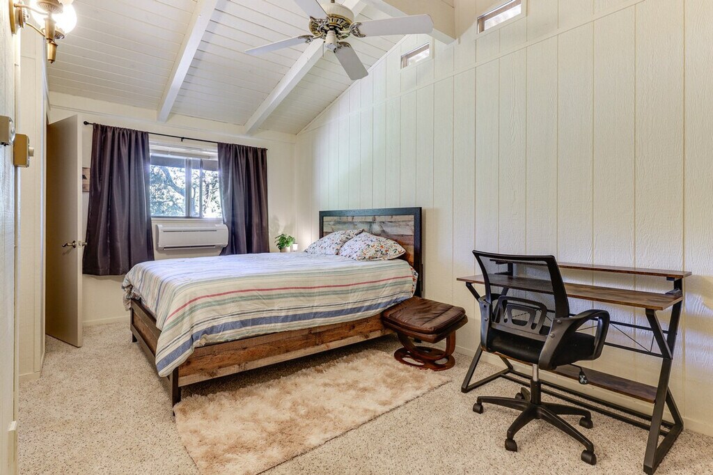 Your extended lakeside escape awaits in this inviting 3-bedroom, 2-bathroom home in Kelseyville. Perfect for a long-term stay, this property offers a private pool and easy access to the community boat launch, a prime spot for fishing and boating. Feel at home with its spacious layout and thoughtful amenities, ensuring a restful retreat. This home is designed for comfort and convenience, featuring a smart TV and two laptop-friendly workspaces for your remote work needs. The kitchen is fully equipped with a refrigerator, stove, oven, dishwasher, Keurig, espresso machine, and all the cooking essentials you need. Enjoy meals at the dining table or take advantage of the outdoor gas grill on the furnished patio. Pets are welcome with a $50 fee, and parking is available in the garage for two vehicles and on the driveway for two additional vehicles. Located in Lake County, this property offers easy access to the natural beauty of the area. Enjoy the community boat launch on Clear Lake for fishing and boating adventures. The home's location makes it an ideal base for exploring the surrounding attractions and enjoying the serene lakeside environment. This 2-story home features step-free entry, with one bedroom and one full bathroom on the first floor. The property is equipped with three exterior security cameras for your safety, facing the pool, patio, and front entry. No smoking, events, parties, or large gatherings are allowed. A photo ID may be required upon check-in. Includes two laptop-friendly workspaces, making it ideal for remote work with free WiFi throughout the home. [SI]