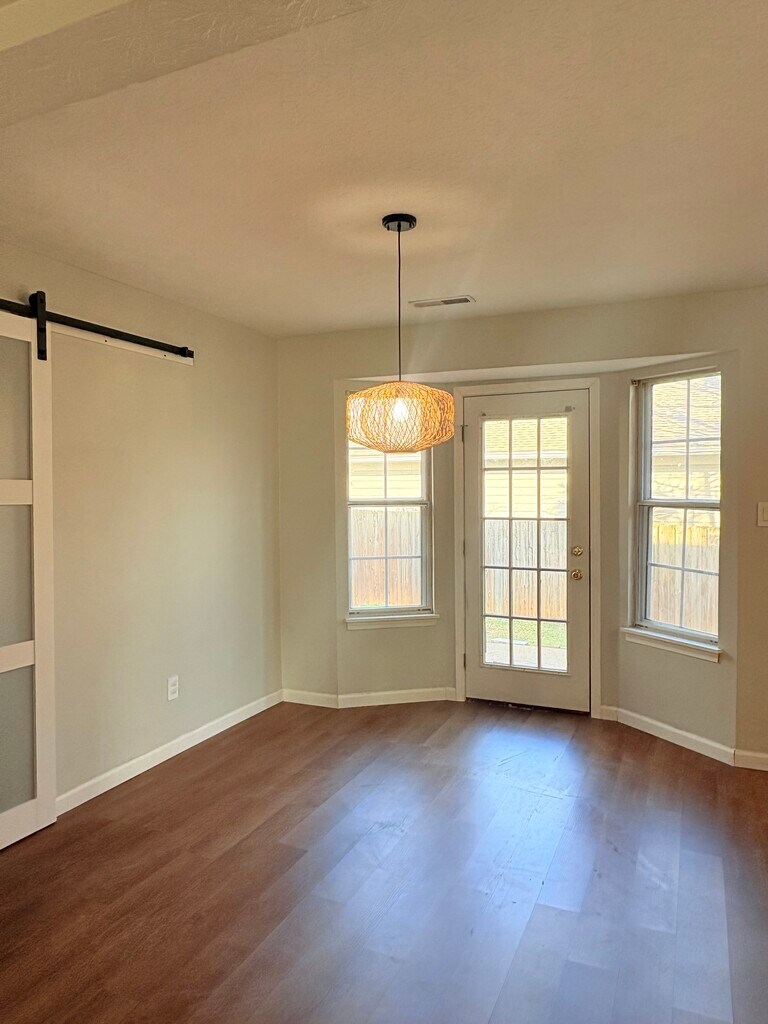 This inviting 2-bedroom, 1.5-bathroom condo in the desirable Greenwood School District offers stylish modern touches throughout. Step into a beautifully designed living area featuring built-in shelving and plenty of natural light, flowing seamlessly into a sleek kitchen and dining space. The charming shiplap accents in the guest bathroom add a warm, contemporary feel. Outside, enjoy a fenced-in backyard with a concrete patio perfect for relaxing or entertaining. With an attached garage for added convenience, this condo blends comfort, character, and functionality in a fantastic location! Call for more information on viewing!