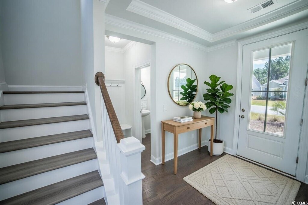 Welcome to this beautiful 3-bedroom,2.5-bath home with a bonus loft located in The Farm at Carolina Forest. The versatile loft space is ideal for a home office,gym,den,playroom,or guest area. The open-concept kitchen is modern and spacious,offering abundant cabinet storage,a large pantry,quartz countertops,Carrera marble backsplash,pendant lighting,and stainless steel appliances including a refrigerator,gas stove,dishwasher,and microwave. The living room features a bright,open layout with ample storage throughout the home. The oversized private primary suite showcases elegant crown molding and tray ceilings,along with a sitting area for added comfort. The en-suite bathroom offers a spa-like retreat with a large soaking tub,stand up shower,separate vanities,and separate walk-in closets! Hardwood flooring runs throughout the main level,with luxury vinyl plank upstairs and tile in the bathrooms. The washer and dryer are conveniently located upstairs near the bedrooms. Step outside to a large fenced-in backyard—perfect for pets—complete with a concrete patio grilling area and a two-car garage. Residents enjoy access to community amenities including a pool,clubhouse with fitness center,basketball courts,and playgrounds. Conveniently located less than 15 minutes to the beach and just off International Drive with quick access to Hwy 31,Hwy 17,Hwy 90 Connector,McLeod Health,grocery stores,restaurants,and shopping. Internet and cable included in rent. Property available for occupancy with 30 days’ notice. Pets OK. Tenant is responsible for all other utilities. Contact listing agent for showings.