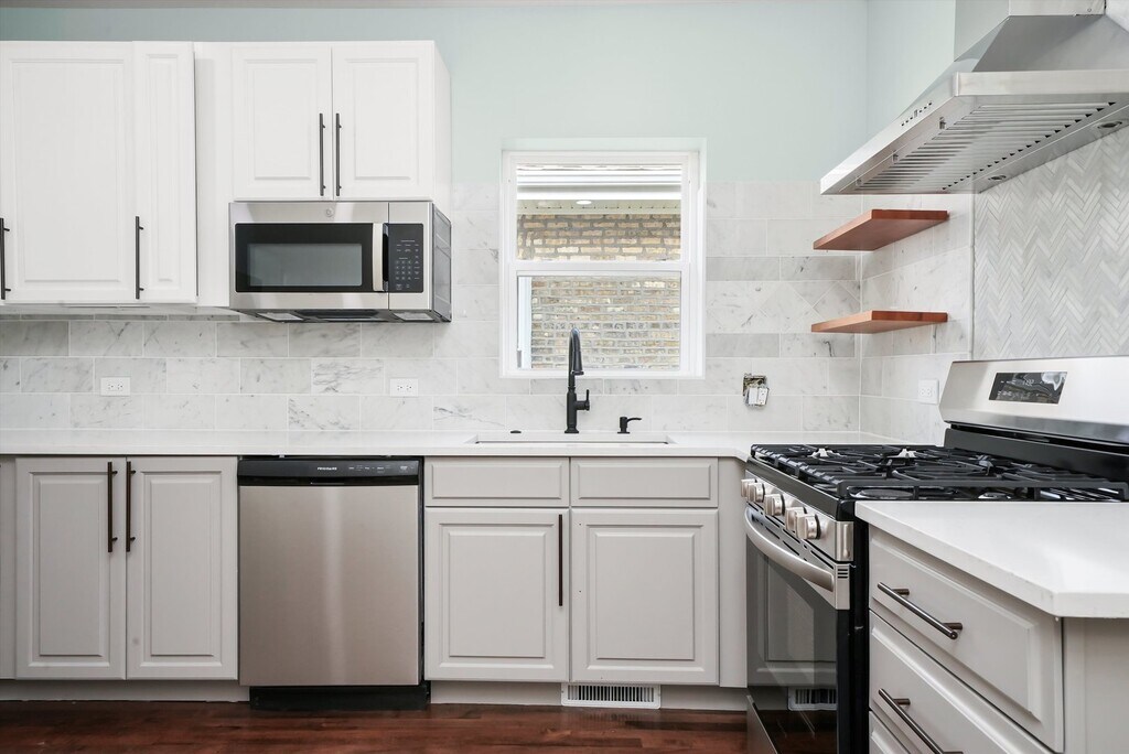 Amazing jumbo classic Chicago-style brick bungalow in Belmont Gardens with over 3,200 sq ft of finished living space! Fully gutted and rehabbed with permits,this 5 bed,3 bath home features 9 ft ceilings,abundant natural light,formal living and dining rooms,white shaker soft-close cabinets,quartz countertops,stainless steel appliances,and hardwood floors throughout the main level and staircase. Enjoy a bright sunroom,spacious primary suite with oversized shower,and a massive finished lower level with a large rec room,two additional bedrooms,and a full bath-perfect for guests or extended family. Step outside to a brand new deck and all new front and back landscaping,ideal for outdoor entertaining. Major upgrades include new HVAC,new roof,new electrical,new hot water tank,new 2-car garage,and an exterior parking pad. Conveniently located near Walmart,groceries,parks,restaurants,public transportation,and just 11 minutes from I-90/94. This home is completely turn-key-just move in and enjoy! MLS# MRD12498549 Based on information submitted to the MLS GRID as of [see last changed date above]. All data is obtained from various sources and may not have been verified by broker or MLS GRID. Supplied Open House Information is subject to change without notice. All information should be independently reviewed and verified for accuracy. Properties may or may not be listed by the office/agent presenting the information. Some IDX listings have been excluded from this website. Prices displayed on all Sold listings are the Last Known Listing Price and may not be the actual selling price.