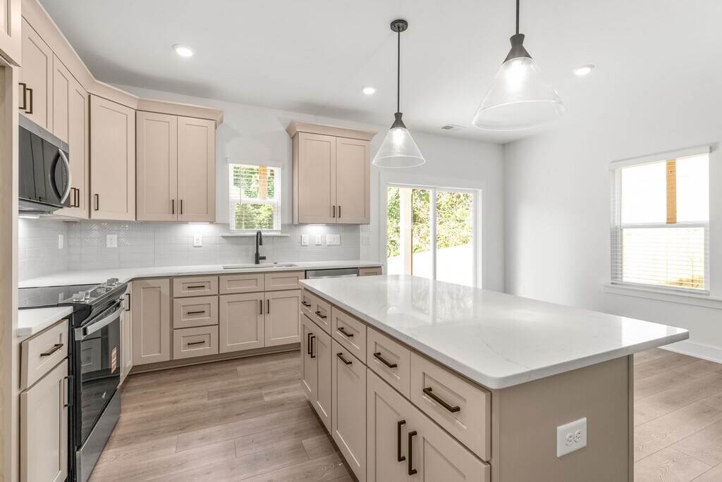Welcome to this beautifully designed new construction townhome in the heart of Westerly Hills, where modern comfort meets timeless style. With a spacious open-concept layout, this home is filled with natural light and thoughtful finishes throughout. The expansive living room features gorgeous vinyl plank flooring, creating a warm and inviting ambiance. The kitchen is a true standout, featuring elegant cabinetry, sleek quartz countertops, a stylish tile backsplash, a center island, and stainless steel appliances. Every detail has been thoughtfully considered, with upgraded fixtures and finishes throughout. The luxurious primary suite offers a peaceful retreat with a double vanity, walk-in shower, and expansive dual walk-in closets. Two generously sized secondary bedrooms provide ample space, and an adjacent full bath completes the upper level. Additional features include a linen closet and a dedicated laundry room for added convenience. A covered back patio overlooks the expansive, fenced-in backyard, an ideal setting for outdoor relaxation, dining, or entertaining.
