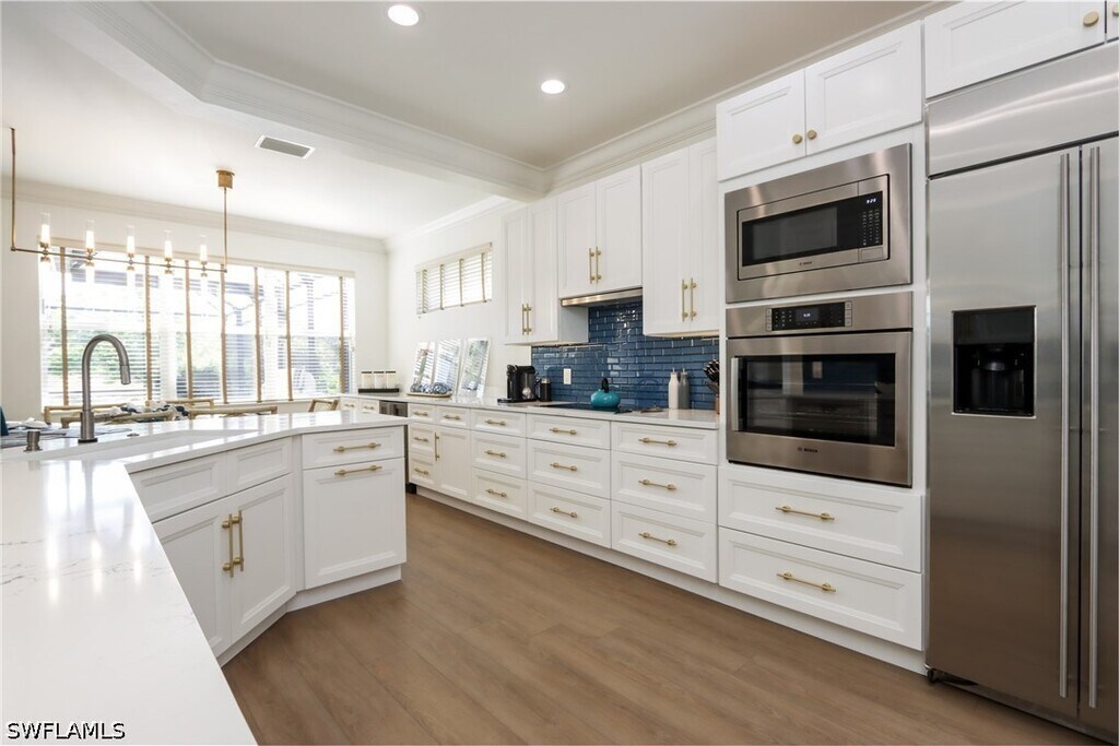 Experience Elevated Seasonal Living in This Stunning Pool Home in Vasari Country Club. Welcome to your private retreat,where luxury,comfort,and effortless indoor-outdoor living come together. Located within the highly sought-after Vasari Country Club,this beautifully appointed residence offers an exceptional seasonal escape for those who appreciate both style and relaxation. Step inside to discover a light-filled,thoughtfully designed interior featuring a spacious open-concept layout,elegant finishes,and a seamless flow to the outdoor living space. The gourmet kitchen and expansive living area provide the perfect setting for entertaining or unwinding after a day in the sun. The first floor also features a formal dining area for eight,a comfortable living space,a den,and a guest bathroom. The primary suite,complete with a king bed,serves as a tranquil sanctuary. Enjoy two walk-in closets and a spa-inspired bathroom with dual vanities,designer fixtures,and a beautifully tiled walk-in shower. The second floor offers two additional guest suites,each with queen beds and televisions,providing comfort and privacy for family and visitors. A separate upstairs living area with TV and a full guest bathroom with a walk-in shower adds to the home’s spacious and functional layout. Outdoors,the home truly shines. Relax and entertain in your private screened lanai featuring a sparkling heated pool and spa,all set against serene golf and lake views. Whether you’re lounging poolside,dining al fresco,or grilling,this outdoor space is designed for effortless enjoyment. Vasari Country Club offers a peaceful yet vibrant lifestyle with an impressive array of amenities,including a championship 18-hole golf course,tennis and pickleball courts,a state-of-the-art fitness center,and an active clubhouse. Residents enjoy a resort-style pool and spa with poolside service,casual bar and grill dining,as well as elegant indoor dining options. Additional features include meeting and game rooms,a pro shop,and practice facilities with a putting green and aqua range. Ideally located just minutes from pristine Gulf beaches,upscale shopping,and fine dining,this home offers the perfect balance of privacy,luxury,and convenience.