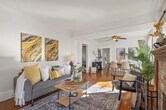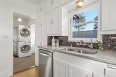 Through the front entry gate awaits a private courtyard with brick patio, shade pergola and a slightly elevated view corridor to the park. Inside, a cozy living room with a handcrafted wood mantle and brick fireplace invites you to relax, while the dining room offers bench seating with hidden storage beneath a large picture window. An updated kitchen, with adjacent laundry room, has crisp white Shaker style cabinetry with black marble tile backsplash, solid surface countertops and stainless steel appliances. The remodeled bathroom has a spacious walk-in, glass-enclosed shower and a garden window. Natural light fills the home! Bonus spaces include a formal entry, laundry room and a walk-in closet/dressing area which could double as a small office space