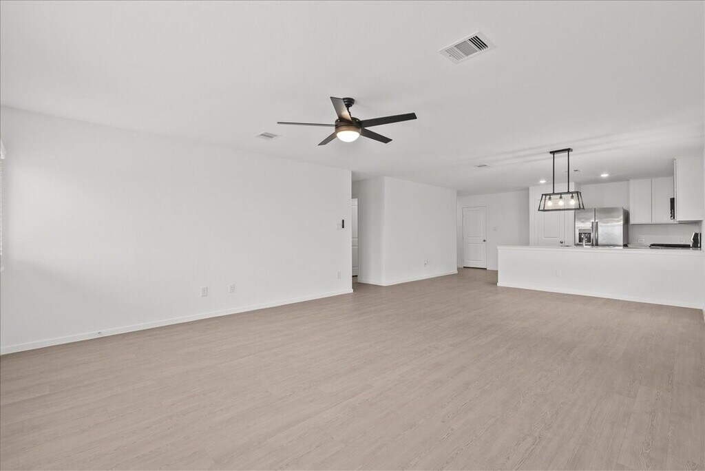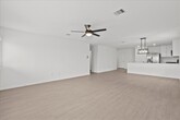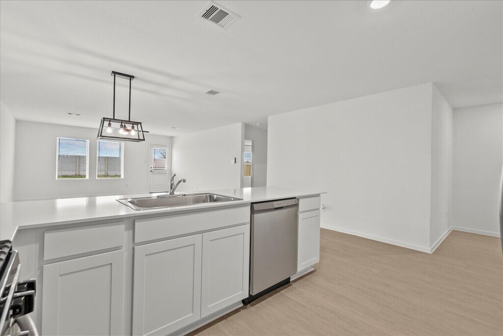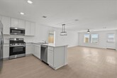 Charming single-story home featuring 3 bedrooms,2 full baths,and a 2-car garage. The chef’s kitchen boasts stainless steel appliances,expansive quartz countertops,42" cabinets,and a convenient breakfast bar—perfectly open to the living and dining areas for easy entertaining. An abundance of windows fills the home with morning light. Enjoy a desirable split floor plan with a neutral color palette throughout,offering both comfort and privacy. No back neighbors add to the peaceful setting. Refrigerator,washer,dryer and newly installed blinds included for added convenience. MLS# 13545605