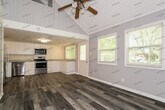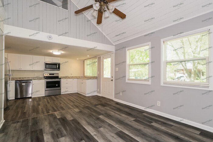 Single-family home located in Florissant, Missouri, offering 3 bedrooms and 1 bathroom across approximately 1,100 sq. ft. Interior features include vaulted ceilings with exposed beams, gray-toned laminate flooring throughout, and light gray walls with white trim. The living area includes a ceiling fan and natural light from multiple windows. The kitchen is equipped with white cabinetry, stainless steel appliances, light-colored countertops, recessed lighting, and a large window. A staircase with white railings and turned balusters leads to an upper level with additional rooms featuring slanted ceilings, double-panel closet doors, and horizontal windows. A built-in shelving unit is located beneath the staircase, and additional shelving is present in the hallway. The bathroom includes a bathtub with sliding glass doors, a pedestal sink, and a toilet, with wall-mounted cabinets and open shelving for storage. A separate area includes a shower with a sliding glass door and hookups for a washer and dryer, along with overhead cabinetry, open shelving, and plumbing and electrical connections. Flooring in both areas is consistent with the rest of the home. Exterior features include a carport and fenced yard. Bedrooms: 3 Bathrooms: 1 SQ. FT: 1,100 Flooring: Laminate, Vinyl, Wood-look pattern in gray and brown tones Utilities: Electric, Gas, Water, Trash, Sewer and Snow Removal Basement: None Laundry: Hookups available Pets: Allowed - Allowed with additional pet fees and screening. Security Deposit: $1,395 Move in fee: $125.00 Application Fee: $55.00 per adult application Resident Benefit Package: $49.95 Monthly Charge (see details below) A full list of fees can be found at DISCLOSURES: This property may require a municipal inspection which may affect when it is available for move-in. There may already be applications submitted for this property at the time you submit your application. We cannot guarantee this home, although it may be available at the time your application is submitted. A security deposit will not be accepted until the rental application is approved. Looking for a new place to call home? Search for open rentals with Hazel Valley where comfort and happiness are our top priority. All Hazel Valley Homes are enrolled in the Resident Benefits Package (RBP) for $49.95/month which includes renters insurance, HVAC air filter delivery (for applicable properties), credit building to help boost your credit score with timely rent payments, $1M Identity Protection, move-in concierge service making utility connection and home service setup a breeze during your move-in, our best-in-class resident rewards program, and much more! More details upon qualified application. This property allows self guided viewing without an appointment. Contact for details.