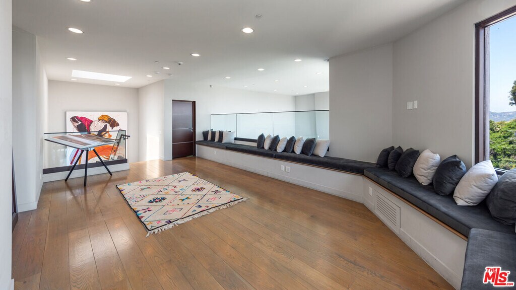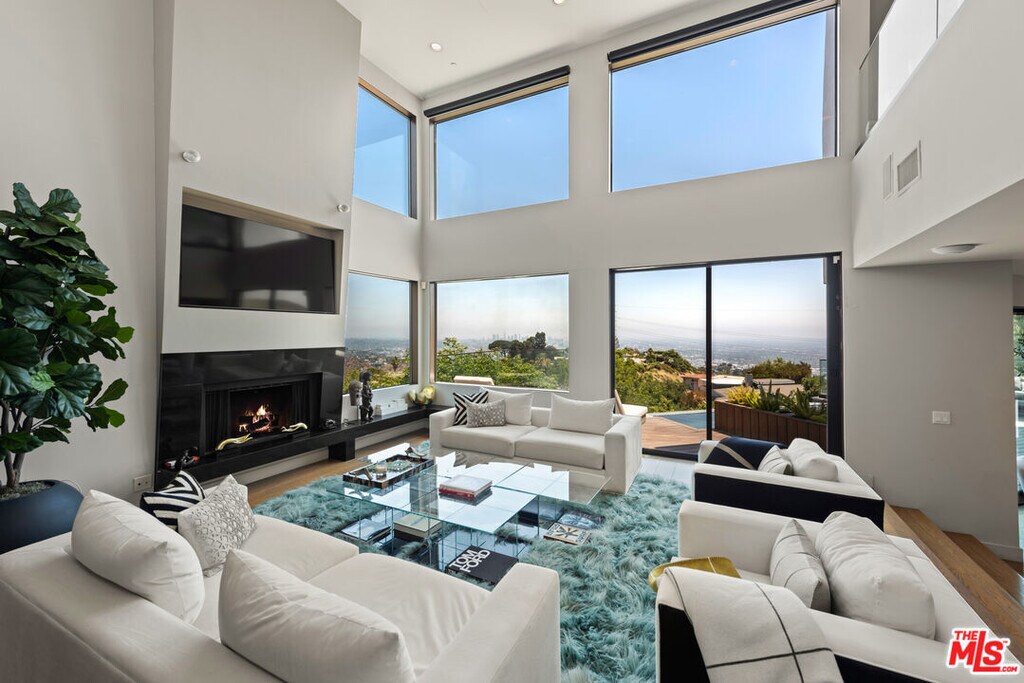 A warm modern oasis perched in the iconic Hollywood Hills. Behind a gated entry, this sophisticated residence showcases sweeping panoramic views of the Los Angeles skyline and the world-famous Hollywood Sign. Designed for effortless modern living, the home features an expansive open floor plan with walls of glass that frame the city lights below. Spanning approximately 5,850 square feet, the property offers 5 bedrooms and 7 bathrooms, including an oversized primary suite with breathtaking views, dual spa-like bathrooms, and generous walk-in closets. A gourmet chef's kitchen, private home theater, and multiple entertaining spaces create the perfect setting for both relaxed living and hosting. Seamless indoor-outdoor flow opens to expansive terraces ideal for entertaining while overlooking the city. Additional highlights include a gated entry and parking for up to 8 vehicles, completing this exceptional Hollywood Hills offering. MLS# 26665147