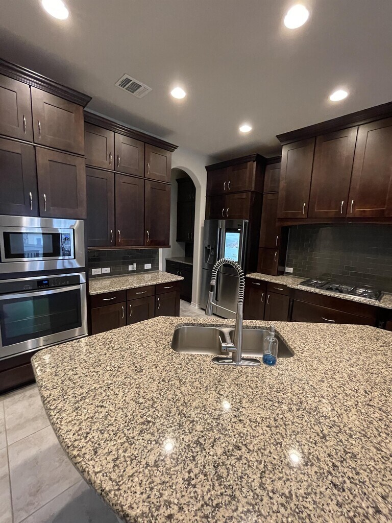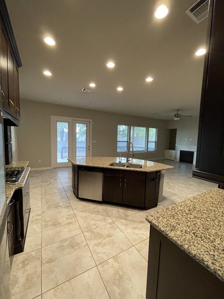 Don't miss your chance to view this exceptional one-story, 3-bedroom, 3-full-bath home with an additional 4th bonus office room. The master suite is a retreat in itself, featuring a separate tub and stand-in shower, double vanity, and a spacious walk-in closet. The home also offers a separate dining room, a generously sized living area with a cozy fireplace, and a large island kitchen equipped with all stainless-steel appliances, including a Samsung Smart Fridge with touchscreen, gas cooking flat top with 5 burners, stainless oven, microwave, and dishwasher. A washer and dryer are included for tenant use. Outside, the covered rear patio provides a comfortable space to relax and enjoy cool evenings. The home also features a three-car garage with opener, offering plenty of room for storage and more. With its prime location and luxurious amenities, this home won't be on the market for long. Schedule a viewing today to experience the best in upscale living at the Cliffs at Cibolo. Cliffs at Cibolo(gated community) Home. Very few homes listed for rent in this community! Come view this one story 3 bedroom, 3 Full bath home+ 4th bonus office room, The Master has a separate tub and stand in shower, double vanity + a spacious walk in closet. The hone boasts a separate dining room, very spacious living area w/fireplace and a very large island kitchen with all stainless appliances, a gas cooking flat top with 5 burners, stainless oven, microwave and dishwasher. Refrigerator is a SAMSUNG Smart Fridge with touchscreen! Washer & Dryer for tenant's use. The rear patio is covered and very comfy for a nice sit down to enjoy the cool evenings. Three car garage w/opener and plenty of room for storage and much more!