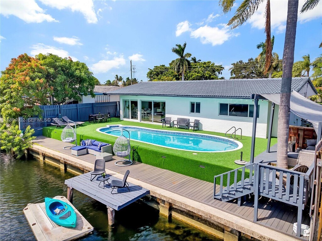 Bring your clothes and enjoy to this spectacular house, WATER FRONT Fully furnished Modern House 5/3, fully renovated house with gorgeous backyard. Custom made lighting, brand new kitchen with all stainless steel appliances: large living area with Outside backyard is absolutely gorgeous. Built grill and fridge,granite countertop. Gorgeous pool. Cozy patio furniture, tanning beds, sofas and dining table, 55 inch TV in all rooms, cameras and much more..., call or text for showings and only appointments please. NOT SUB LEASE, not interesting in sub lease, price for year lease , ask for seasonal price available JUNE 5, 2025 MLS # A11804902