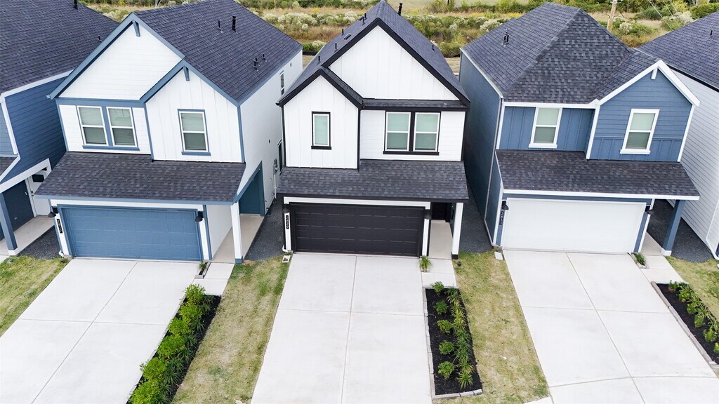 Welcome to this stunning brand-new 3-bed,2.5-bath home in the desirable Grand West community of Houston! Built in 2025 and offering ~1,586 sq ft of modern living space,this two-story beauty features an open-concept main floor with a spacious living and dining area that flows seamlessly into a chef-inspired kitchen with island seating,stainless-steel appliances,and ample cabinet space. Upstairs,enjoy a large game room / loft area—perfect for a home office,media room,or kids’ play zone—alongside a private primary suite with dual-sink vanity,walk-in closet,and walk-in shower. Two secondary bedrooms and an upstairs laundry add everyday convenience. Relax outdoors on the covered patio or fenced side yard. 2-car attached garage,smart-home features,and energy-efficient design. Prime location near 288 & 610,minutes from Downtown Houston & the Texas Medical Center. Move-in ready & never lived in! MLS# 25536497