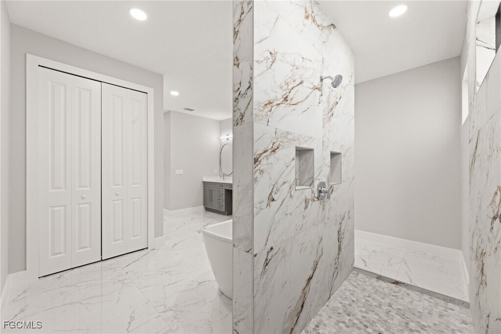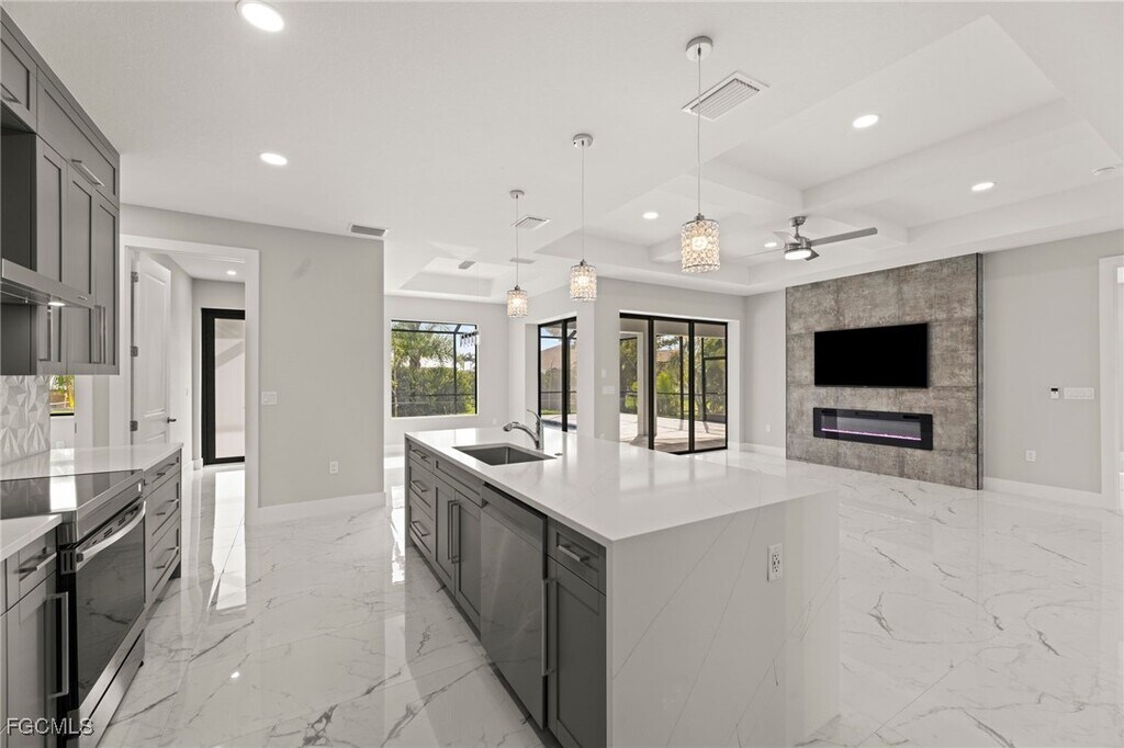 12 Month Rental NOW AVAILABLE - This NEW CONSTRUCTION home features 3 Bedrooms,2 full bathrooms,a 2-car garage and 2,000 sq. ft. of living space – the primary bedroom has two large walk-in closets along with dual sinks,a freestanding tub with an elegant backsplash and a creative shower layout directly behind. There is a full-size pool bath with a standup shower and beautiful tile. The living room has 10ft coffered ceilings along with a custom built in TV enclosure with tile from top to bottom including an electric fireplace and a 70-inch smart TV (The enclosure can accommodate larger sizes). The entryway has 14ft cascading ceilings along with three large windows to offer plenty of natural light throughout the day. Overlooking the living room is the large waterfall kitchen island with quartz countertops and extra seating. The kitchen features tall cabinets with soft close drawers and stainless-steel appliances. There is a walk-in pantry and directly across a large laundry room. The dining room has a large window and sliding doors leading out to the lanai,a relaxing view of the pool! This open floorplan is very popular,offering plenty of entertainment space and convenience. There is beautiful porcelain tile flooring spread throughout the entire home. Love swimming? You’ll love this pool (13x26) in the large enclosed lanai with beautiful pavers and a large soaking area. There is an outdoor grill station with a small fridge,you’ll want to spend all of your free time outside. This home has hurricane impact windows and doors and city water and sewer in place. Conveniently located...a short drive,paddle or walk to The Shops at Surfside. Tenant background check and credit check will be conducted,along with past rental history and employment verification.