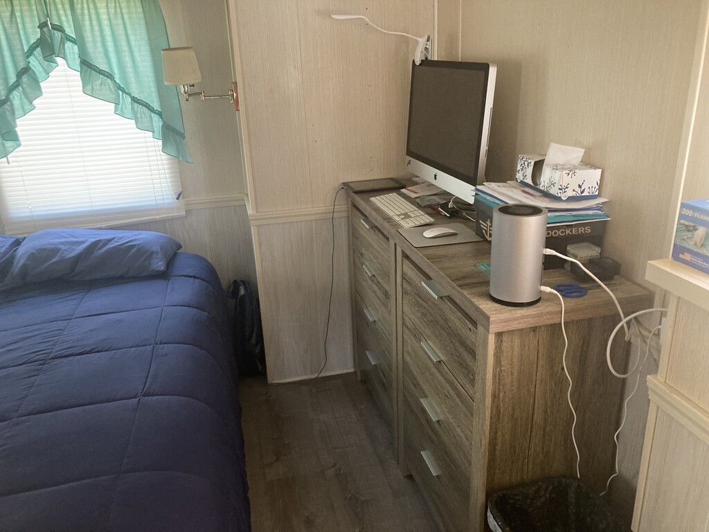 This is a mobile home in a 55+ gated community. Short- or long-term lease new roof, stove, above stove Mico stove mattress and refrigerator. Completely furnished. Large screen/family room. 12x25 Cable--Internet--Water--Lawn Care-- are Included in the Rent!!