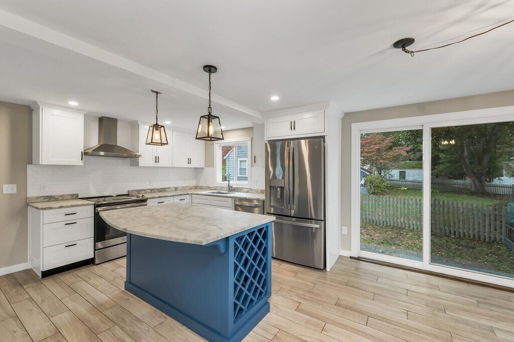 This recently renovated ranch offers a bright, open layout with modern updates throughout. The eat-in kitchen features new finishes, plenty of cabinet space, and sliding doors that open to the back patio — perfect for morning coffee or summer gatherings. The spacious living room is filled with natural light from a large bay window, creating a comfortable space to relax. A convenient mudroom with laundry adds extra storage and connects the main living areas. The home offers three bedrooms and a full bathroom, all freshly updated, plus a lower level with a half bath and additional space for a workshop, storage, or recreation. Located in a desirable Portsmouth neighborhood close to shops, dining, and commuter routes, this home provides easy, single-level living with modern style. MLS# 5070297