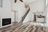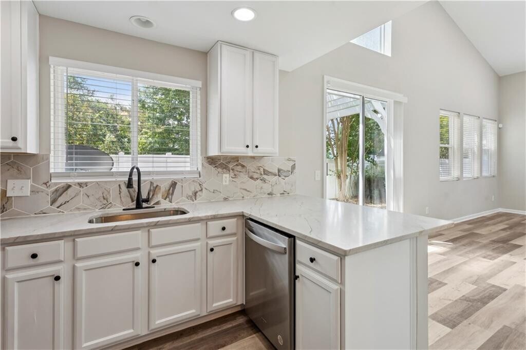 This charming home has been beautifully updated,and offers comfort,convenience,and style throughout. As you step inside,you’ll notice the living room that boasts soaring two-story ceilings,an abundance of natural light,a cozy gas fireplace,and built-in bookshelves,creating a warm and inviting space. The open floor plan flows from the living room into the kitchen,which is fully equipped with brand-new stainless-steel appliances,granite countertops,white cabinetry,a breakfast bar,and a pantry—perfect for everyday living and entertaining. Upstairs,the spacious primary bedroom includes his-and-hers closets and an en-suite bath with ample vanity space,a soaking tub,and a recently updated,spacious shower. The two additional bedrooms share a full bathroom that is conveniently located in between them. Enjoy the outdoors in the fully fenced,private backyard,which features a beautiful pergola covered patio. Additional features of this home include a two-car garage,a covered front entry that offers both keyed and keyless access for ease and security,a laundry equipped with a washer and dryer,a freshly painted interior and exterior,brand-new flooring throughout,double-paned windows,attic storage with disappearing stairs,an installed security system,and a front yard that is HOA-maintained for your convenience. Pet friendly—restrictions apply. The highly sought after River Park community offers a swimming pool,clubhouse,playground,tennis courts,picnic area,and a seating area with a fire pit. It has easy access to I-575,and is located conveniently to downtown Woodstock,the Woodstock Outlet Mall,Costco,Kroger,Olde Rope Mill Park,JJ Biello Park,and tons of additional shopping,restaurants,and entertainment.