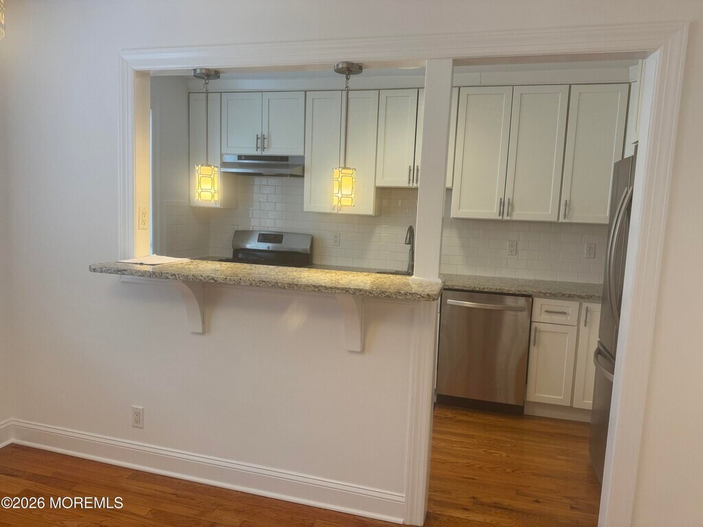 Experience the best of Red Bank living in this beautifully renovated,first-floor 2-bedroom,1-bath condo. The open-concept layout offers hardwood floors and recessed lighting throughout. The chef's kitchen features a granite island,premium appliances,and elevated cabinetry--perfect for entertaining. Both bedrooms offer generous closet space,and the modern bathroom includes a stylish tile shower. Enjoy abundant natural light and modern finishes in every room. Heat and hot water are covered in rent. Located just steps from downtown's shops,restaurants,theaters,and waterfront access--and only a mile from the the Red Bank train station. Commuters will appreciate easy access to NYC via rail and the Belford ferry; highways are also close. A rare find combining style and convenience
