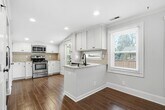 Available for rent is a beautifully updated 3-bedroom, 2-bath home featuring a spacious deck and a fully fenced backyard. This home offers a modern feel throughout, with dark tile flooring extending through most of the living areas and an open layout that seamlessly connects the living room to the stylish kitchen. The kitchen is outfitted with granite countertops, a tile backsplash, stainless steel appliances, and custom white cabinetry. The primary bedroom offers a touch of luxury with a stunning chandelier and a wall-mounted electric fireplace. A dedicated laundry room with a washer and dryer sits just off the kitchen for added convenience. Step outside to a large back deck overlooking the private fenced yard—ideal for relaxing, grilling, or hosting gatherings. Conveniently located near popular restaurants, cafés, and entertainment options, with quick access to Uptown Charlotte. Call today to schedule your tour!
