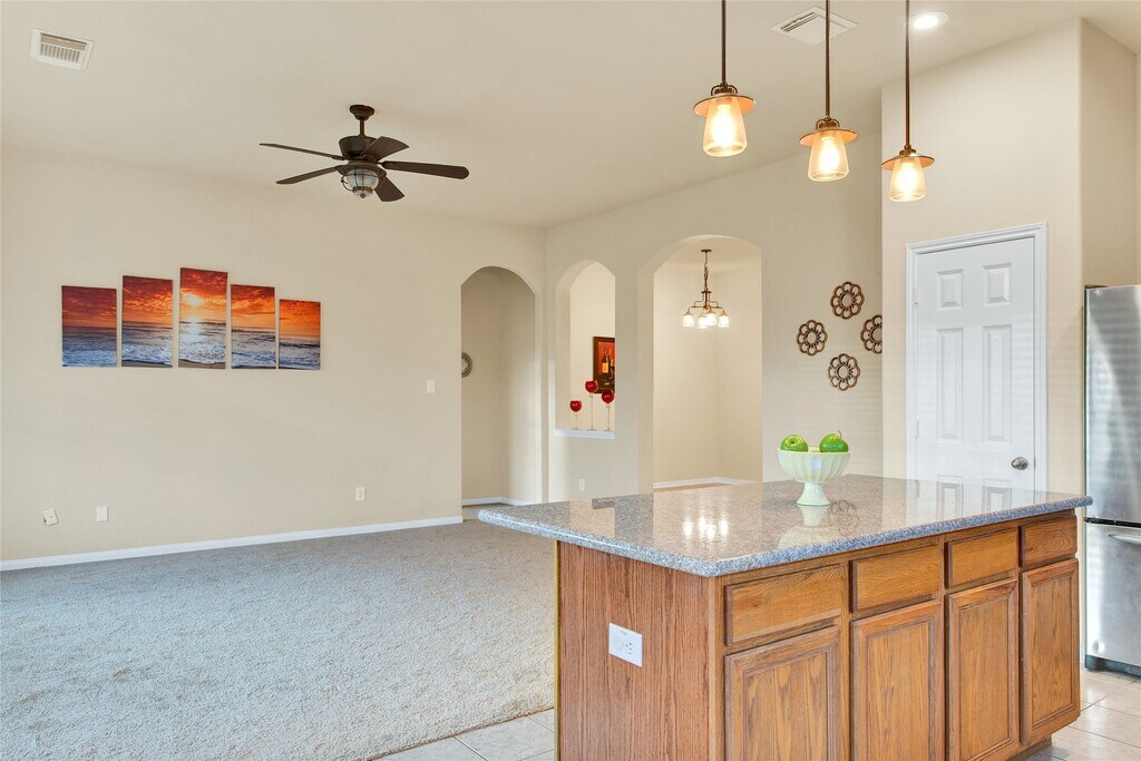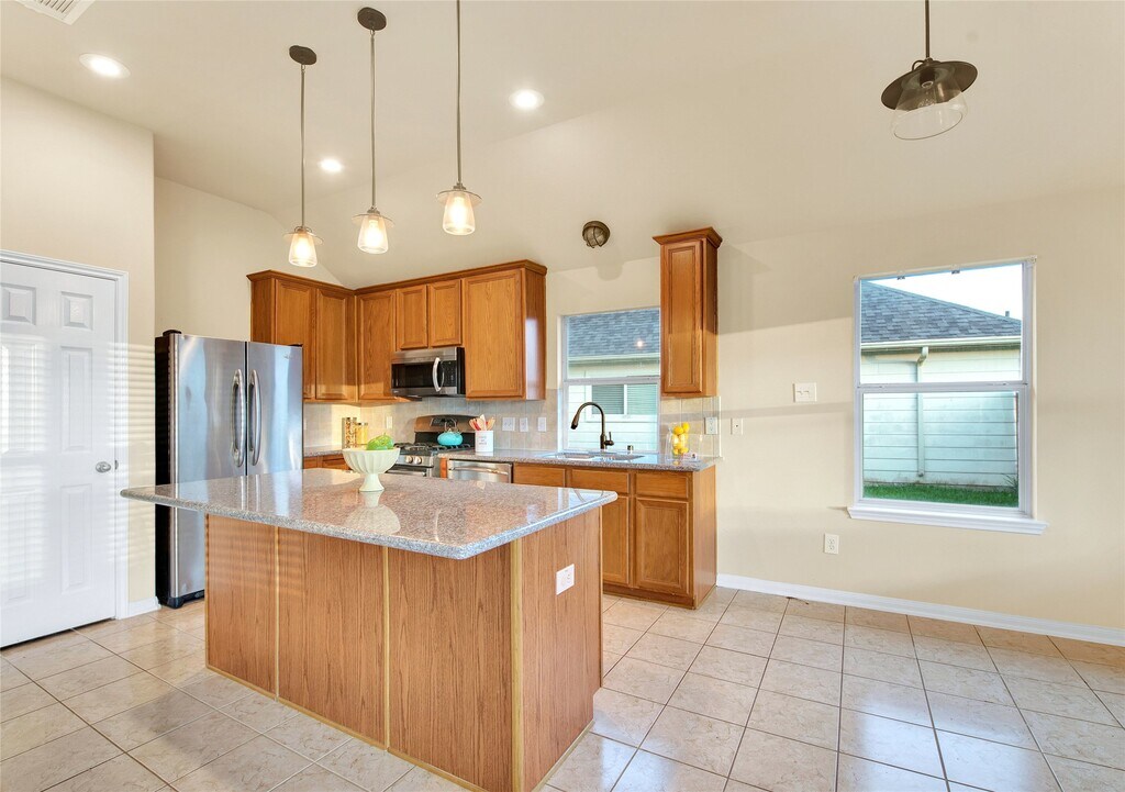You will love this stunning one story home with no back neighbor in the quite street. This 3- bedroom,2-bathroom,huge family room,formal dining and flex/extra game room,giving you 1842 sq. ft. of spacious elegance with new carpet (2018) in all bedrooms,ceramic flooring in foyer,dining and kitchen. Modern lighting fixtures,new granite (2018) in Kitchen,new appliances,fresh painted. Situated in a convenient,friendly neighborhood with proximity to Brazos town center and hwy 59. Appliances provided (Washer,Dryer & Refrigerator) MLS# 64617729