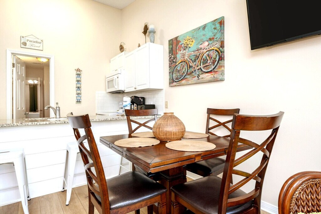 Feel at home in Shelly Sands, perfectly situated on the Destin/Miramar Beach line. This third-floor condo offers a peekaboo view of the Gulf and space for up to 6 guests. Please keep in mind as this is a third floor unit, there are three flights of stairs and no elevator in the complex. This condo features a fully equipped kitchen for home-style meals. The kitchen is stocked with full appliances, dishes, bake ware, pots and pans, silverware, utensils, crockpot, blender, a traditional coffee maker and Keurig. A high chair, pack and play, and plastic dinnerware, utensils, and cups are available for tiny travelers. Linens and beach towels are provided. A courtesy supply of essentials, including toilet paper, paper towels, soap, a trash bag, and dish and laundry detergent, is included. A washer and dryer is not offered inside the unit, but there is a pay-per-use community laundry room available on the same floor next to the stairway. Up to 2 vehicles can be accommodated in the parking lot, with provided parking passes. This condo is in its own little slice of paradise, directly across the street from gated beach access. Situated right on Scenic Highway 98, you'll find many restaurants and beach stores. A few minutes' drive in either direction will take you to Silver Sands Outlet Mall, Destin Commons, HarborWalk Village, Big Kahunas, The Track, and many grocery stores, restaurants, and attractions for all ages. The beach and several restaurants are within walking distance. Situated right on the Miramar Beach/Destin line, you'll find that everything is just a short drive away. During busy times it can be easier to take an Uber, Lyft, or taxi to avoid dealing with traffic and parking. As this is a residential complex, a 10 pm noise ordinance is in effect. Excessive noise, parties, illegal activity, or disturbances are not permitted at any time. This partner does not permit pets at any time. No smoking is allowed in the condo or on the balcony at any time. Guests should bring along any spices, condiments, and oils they may need, as perishable or non-perishable items are not provided. Check-in is at 4:00 PM CST and check-out is at 10:00 AM CST. Golf cart, trailer, RV, box truck, or watercraft parking is not permitted in the complex; HOA towing fees apply for any violations. [SI]